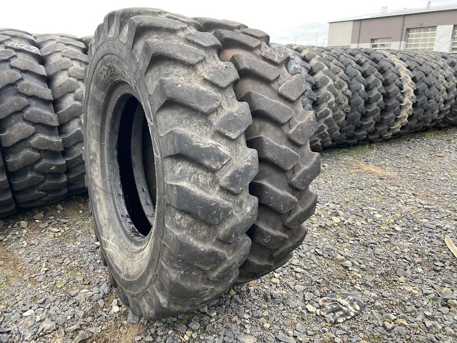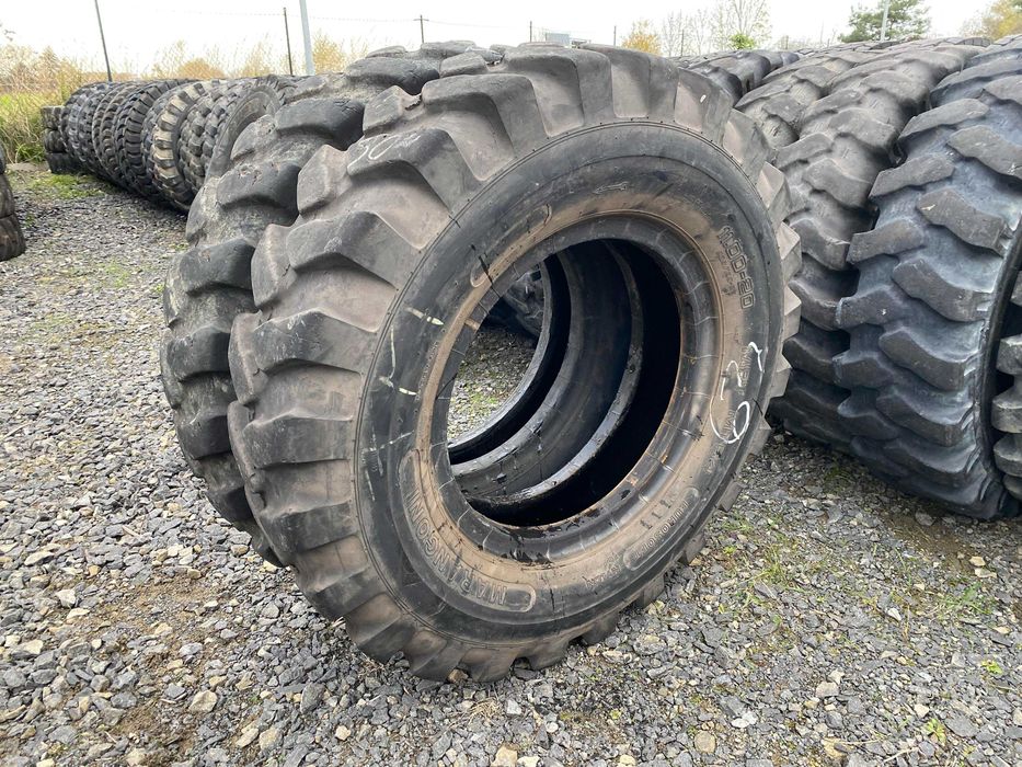 Oferowany produkt to opona o rozmiarze 11.00-20, wyprodukowana przez firmę MARANGONI. Model bieżnika MT54 MPT charakteryzuje się solidną konstrukcją, przeznaczoną do zastosowań w koparkach kołowych. Opona jest w stanie zachować 80-90% oryginalnego bieżnika, co świadczy o jej dobrym stanie technicznym i wydajności. W ofercie dostępne są dwie sztuki tego modelu, co umożliwia zakup zarówno pojedynczej opony, jak i zestawu. Opona MT54 MPT została zaprojektowana z myślą o intensywnym użytkowaniu w trudnych warunkach, co czyni ją odpowiednim wyborem dla profesjonalnych operatorów maszyn budowlanych. Jej właściwości zapewniają stabilność oraz przyczepność, co jest kluczowe w pracy z ciężkim sprzętem.