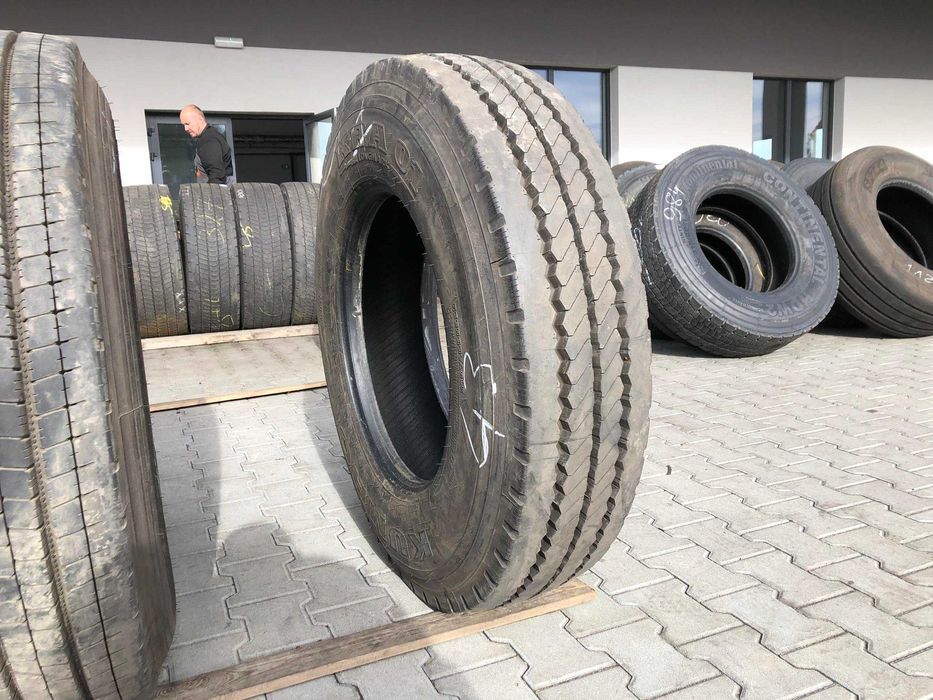 Opony ciężarowe KUMHO KRA01 w rozmiarze 11R22.5 to produkt dedykowany do zastosowań w transporcie ciężkim, szczególnie na osi prowadzącej. Opona charakteryzuje się nowoczesnym bieżnikiem, który zapewnia optymalne parametry trakcyjne oraz stabilność podczas jazdy. Stan bieżnika wynosi 100%, co gwarantuje pełną wydajność i bezpieczeństwo użytkowania. Opona została zaprojektowana z myślą o długotrwałej eksploatacji, co czyni ją odpowiednim wyborem dla flot transportowych oraz pojazdów ciężarowych. Produkt dostępny jest w ilości 1 sztuki. KUMHO to renomowany producent, znany z wysokiej jakości swoich wyrobów, co potwierdza solidność i niezawodność oferowanej opony. Specyfikacja: