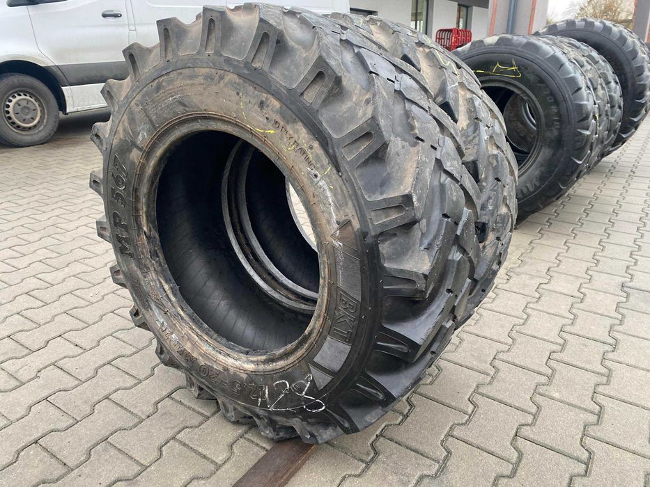 Oferowany produkt to opona przemysłowa BKT MP 567, przeznaczona do zastosowań w ładowarkach. Opona ma rozmiar 12.5-20, z oznaczeniem 335/80-20 oraz 12.5R20. Stan bieżnika wynosi od 50% do 60%, co wskazuje na umiarkowane zużycie i możliwość dalszego użytkowania. Model MP 567 charakteryzuje się solidną konstrukcją, co zapewnia odpowiednią przyczepność oraz stabilność w trudnych warunkach przemysłowych. Produkt dostępny jest w ilości dwóch sztuk. Opony tego typu są dedykowane do intensywnej eksploatacji, co czyni je odpowiednim wyborem dla operatorów ładowarek, którzy poszukują niezawodnych rozwiązań do pracy w terenie. Warto zwrócić uwagę na renomę producenta, firmy BKT, która jest znana z wysokiej jakości swoich produktów.
