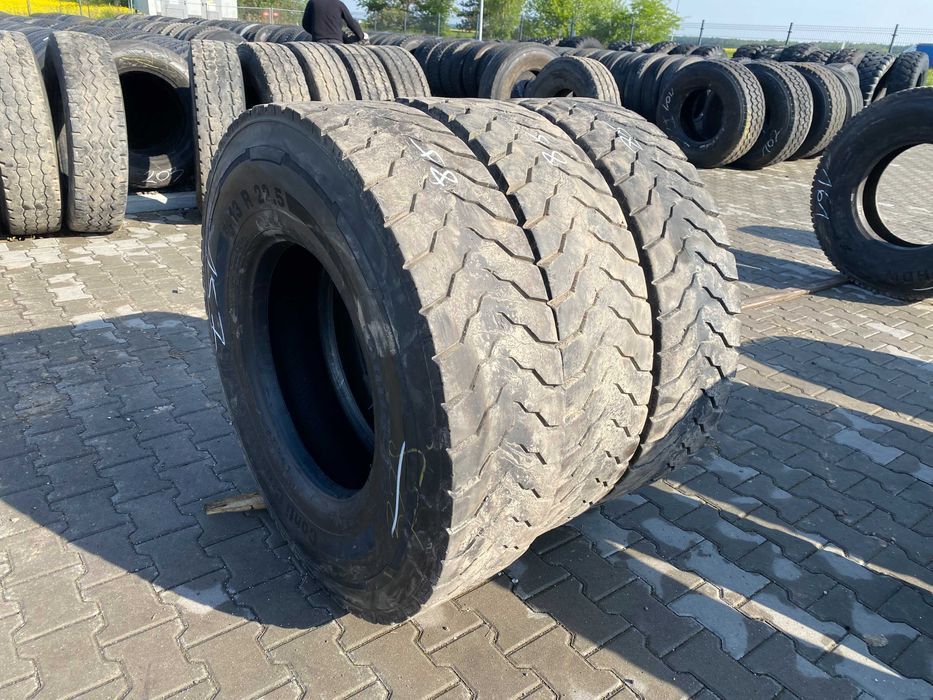 Opony ciężarowe 13R22.5 CONTINENTAL CONTI CROSSTRAC HD3 to produkt renomowanego producenta, przeznaczony do zastosowania na osi napędowej pojazdów ciężarowych. Opony te charakteryzują się rozmiarem 13R22.5, co zapewnia odpowiednią nośność oraz stabilność podczas eksploatacji. Model CONTI CROSSTRAC HD3 został zaprojektowany z myślą o wymagających warunkach drogowych, oferując optymalną przyczepność oraz trwałość. Stan opon jest widoczny na załączonych zdjęciach, co umożliwia ocenę ich jakości. W ofercie dostępne są trzy sztuki, co pozwala na ich wykorzystanie w pojazdach wymagających wymiany opon na osi napędowej. Produkt ten jest odpowiedni dla firm transportowych oraz użytkowników indywidualnych, którzy poszukują niezawodnych opon do intensywnej eksploatacji w trudnych warunkach.