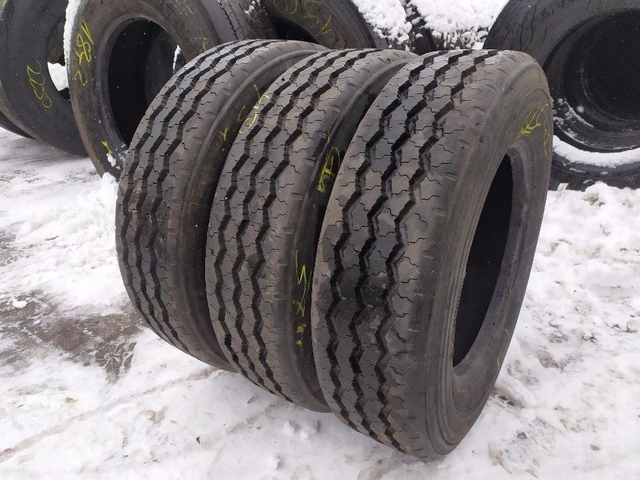 Opony ciężarowe o rozmiarze 215/75R17.5 to produkt dedykowany do zastosowania na osi naczepowej. Charakteryzują się one pełnym bieżnikiem, co zapewnia optymalne właściwości jezdne oraz bezpieczeństwo podczas transportu. Opony te są dostępne w ilości trzech sztuk, co umożliwia ich wykorzystanie w różnych konfiguracjach pojazdów ciężarowych. Dzięki solidnej konstrukcji, opony te są przystosowane do intensywnego użytkowania w trudnych warunkach drogowych, co czyni je odpowiednim wyborem dla firm transportowych. Stan opon wynosi 100% bieżnika, co gwarantuje ich długotrwałą eksploatację oraz wysoką wydajność. Produkt ten spełnia standardy jakościowe wymagane w branży transportowej, co czyni go odpowiednim rozwiązaniem dla profesjonalnych użytkowników. Specyfikacja: