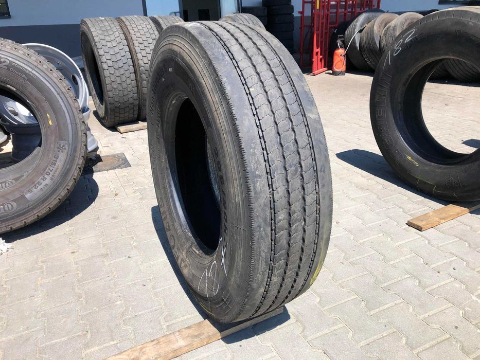 Stan bieżnika wynosi 8-9 mm, co wskazuje na umiarkowane zużycie i możliwość dalszego użytkowania. Opona ta jest produktem marki AEOLUS, znanej z wysokiej jakości swoich wyrobów. W ofercie dostępna jest jedna sztuka. Opony tego typu są istotnym elementem floty transportowej, wpływającym na bezpieczeństwo oraz efektywność operacyjną pojazdów.