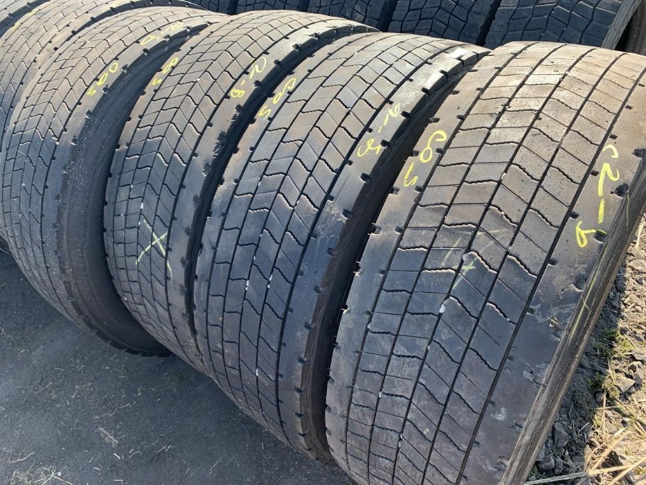 Stan bieżnika wynosi od 7 do 8 mm, co wskazuje na umiarkowane zużycie i możliwość dalszego użytkowania. Opony te oferują dobre parametry trakcyjne oraz komfort jazdy, co jest istotne w kontekście transportu towarów. W ofercie dostępne są 4 sztuki, co umożliwia ich zakup w większej ilości. Produkt ten spełnia standardy jakościowe, co czyni go odpowiednim wyborem dla profesjonalnych użytkowników w branży transportowej.