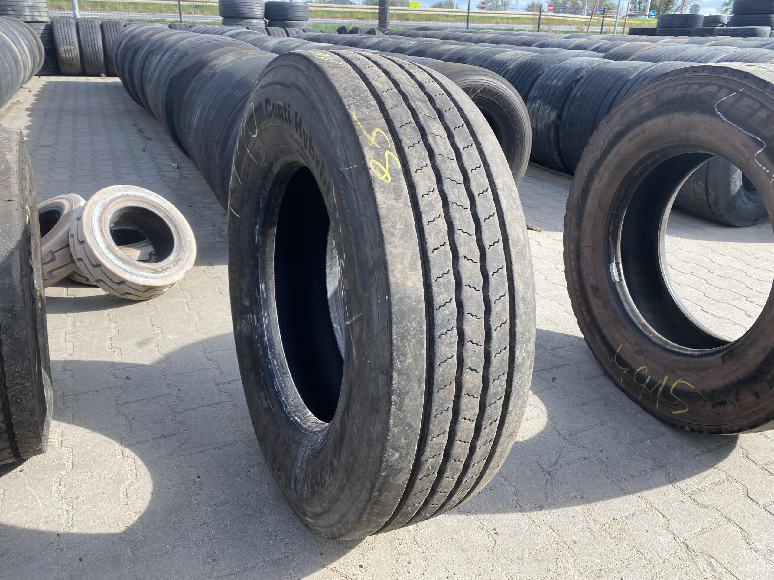 Opony ciężarowe 315/70R22.5 marki Continental, model CONTI HYBRID HS3, charakteryzują się rozmiarem 315/70R22.5 oraz głębokością bieżnika wynoszącą 10-11 mm. Produkt ten jest przeznaczony do stosowania na osi prowadzącej pojazdów ciężarowych. Opony Continental są znane z wysokiej jakości wykonania oraz innowacyjnych rozwiązań technologicznych, które wpływają na ich wydajność i trwałość. Model CONTI HYBRID HS3 został zaprojektowany z myślą o optymalizacji zużycia paliwa oraz zapewnieniu doskonałej przyczepności na różnych nawierzchniach. Opona ta jest dostępna w ilości 1 sztuki. Stan bieżnika, wynoszący 10-11 mm, wskazuje na jej dobry stan techniczny, co może wpływać na bezpieczeństwo i komfort jazdy. Produkt ten jest odpowiedni dla przedsiębiorstw transportowych, które poszukują niezawodnych rozwiązań w zakresie opon do pojazdów ciężarowych.