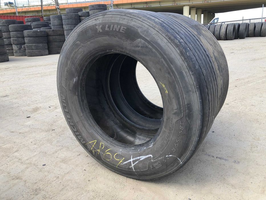 Opony ciężarowe MICHELIN X LINE ENERGY T w rozmiarze 385/55R22.5 to produkt dedykowany do zastosowania na osi naczepowej. Charakteryzują się bieżnikiem zaprojektowanym z myślą o optymalizacji efektywności paliwowej oraz wydłużeniu przebiegu. Opony te posiadają głębokość bieżnika wynoszącą 7-8 mm, co świadczy o ich dobrym stanie technicznym i możliwościach dalszego użytkowania.