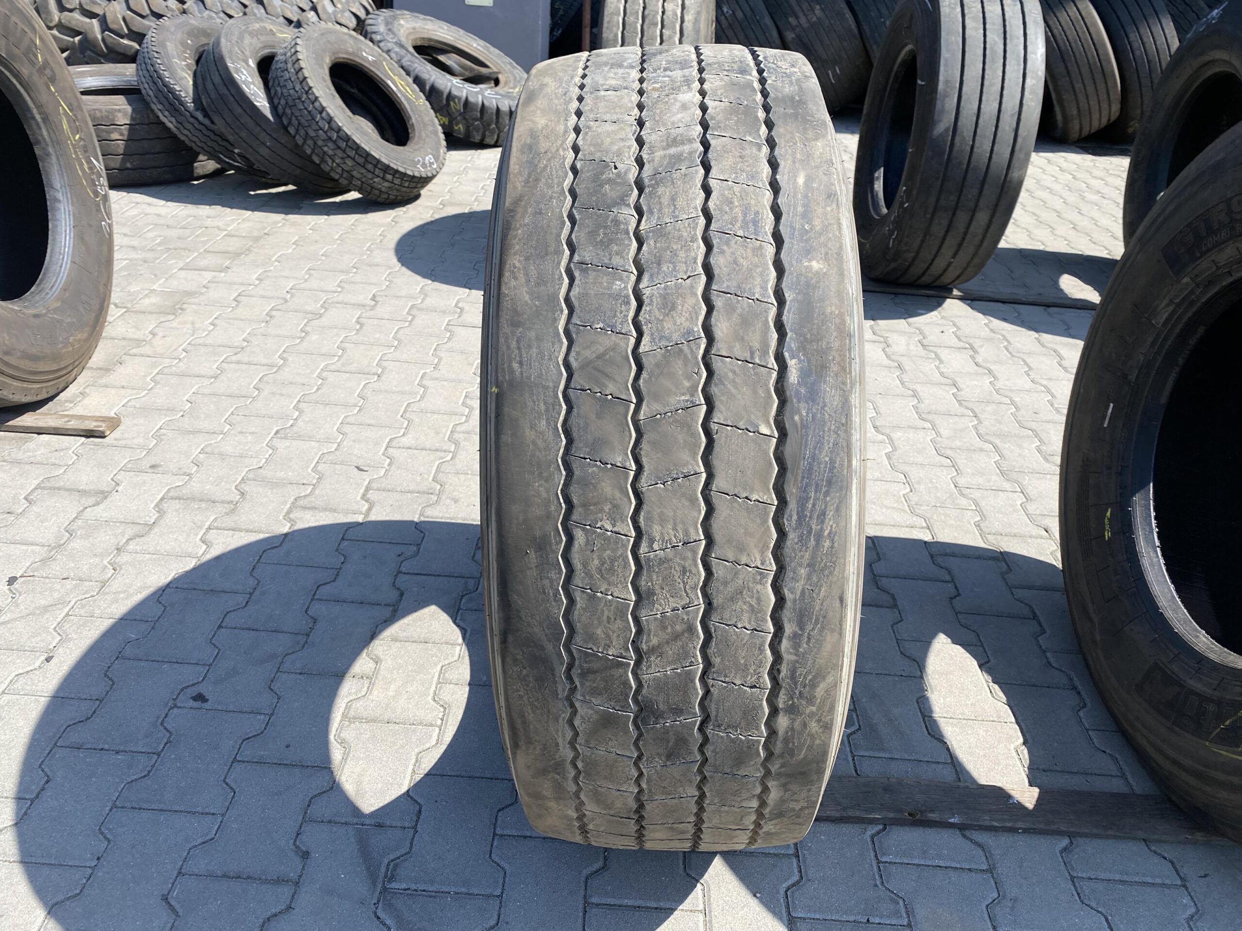 Stan bieżnika wynosi od 7 do 9 mm, co wskazuje na umiarkowane zużycie i możliwość dalszego użytkowania. Opona została wyprodukowana przez renomowanego producenta AEOLUS, co gwarantuje wysoką jakość wykonania oraz trwałość. Produkt dostępny jest w ilości 1 sztuki. Opona ta jest odpowiednia do zastosowań w transporcie ciężkim, zapewniając nie tylko bezpieczeństwo, ale także efektywność operacyjną w różnych warunkach.