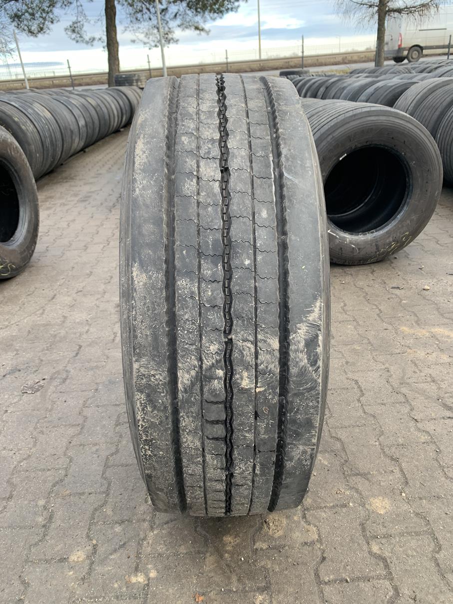 Opony ciężarowe 385/65R22.5 BRIDGESTONE DURAVIS R-STEER 002 to produkt dedykowany do zastosowań na osi przedniej pojazdów ciężarowych. Oferują one rozmiar 385/65R22.5, co zapewnia odpowiednią nośność oraz stabilność podczas jazdy. Model DURAVIS R-STEER 002 charakteryzuje się bieżnikiem o głębokości 12-13 mm, co wpływa na jego trwałość oraz właściwości jezdne. Opony te zostały zaprojektowane z myślą o zapewnieniu optymalnej przyczepności na różnych nawierzchniach, co jest istotne w kontekście transportu towarów. Produkt pochodzi od renomowanego producenta BRIDGESTONE, znanego z wysokiej jakości swoich wyrobów. Opona jest dostępna w ilości 1 sztuki. Stan bieżnika wskazuje na umiarkowane zużycie, co może wpływać na dalsze użytkowanie. Opony te są odpowiednie dla firm transportowych poszukujących niezawodnych rozwiązań w zakresie ogumienia.