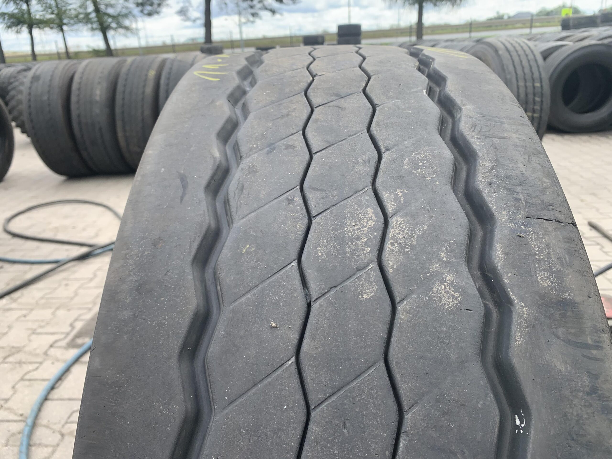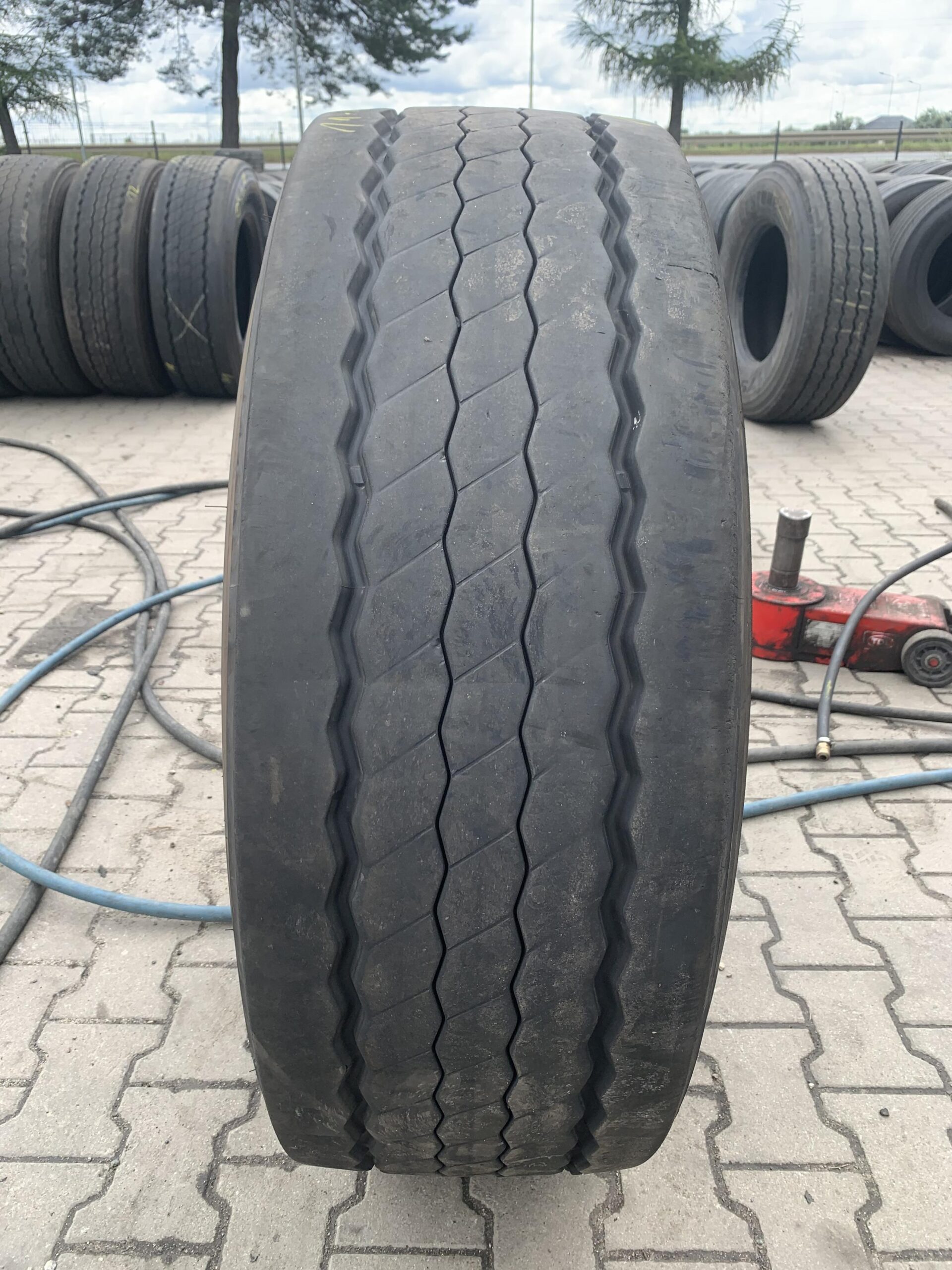 Opony ciężarowe 385/65R22.5 BRIDGESTONE DURAVIS R-TRAILER 002 to produkt dedykowany do zastosowań na osi naczepowej. Oferują one rozmiar 385/65R22.5, co czyni je odpowiednimi do transportu ciężkich ładunków. Model DURAVIS R-TRAILER 002 charakteryzuje się specjalnie zaprojektowanym bieżnikiem, który zapewnia optymalną przyczepność oraz stabilność podczas jazdy. Opony te są dostępne w liczbie 1 sztuki, a ich stan wynosi 11-12 mm, co wskazuje na umiarkowane zużycie. Produkt ten jest przeznaczony do intensywnego użytkowania w warunkach drogowych, gdzie wymagana jest wysoka wydajność oraz trwałość. Opony BRIDGESTONE są znane z wysokiej jakości wykonania oraz innowacyjnych rozwiązań technologicznych, co przekłada się na bezpieczeństwo i komfort jazdy.