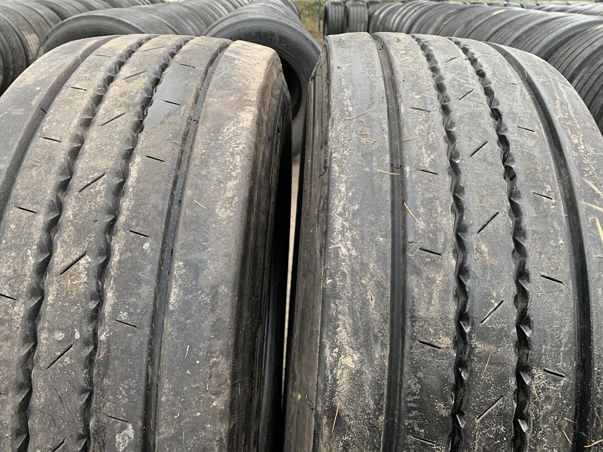 Dostępne są dwie sztuki opon w stanie bieżnika wynoszącym 12-13 mm, co wskazuje na ich dobrą kondycję i możliwość dalszego użytkowania. Opony te są odpowiednie do intensywnego użytkowania w transporcie ciężkim, oferując jednocześnie komfort jazdy oraz bezpieczeństwo. Produkt ten spełnia wysokie standardy jakości, co czyni go odpowiednim wyborem dla profesjonalnych przewoźników.