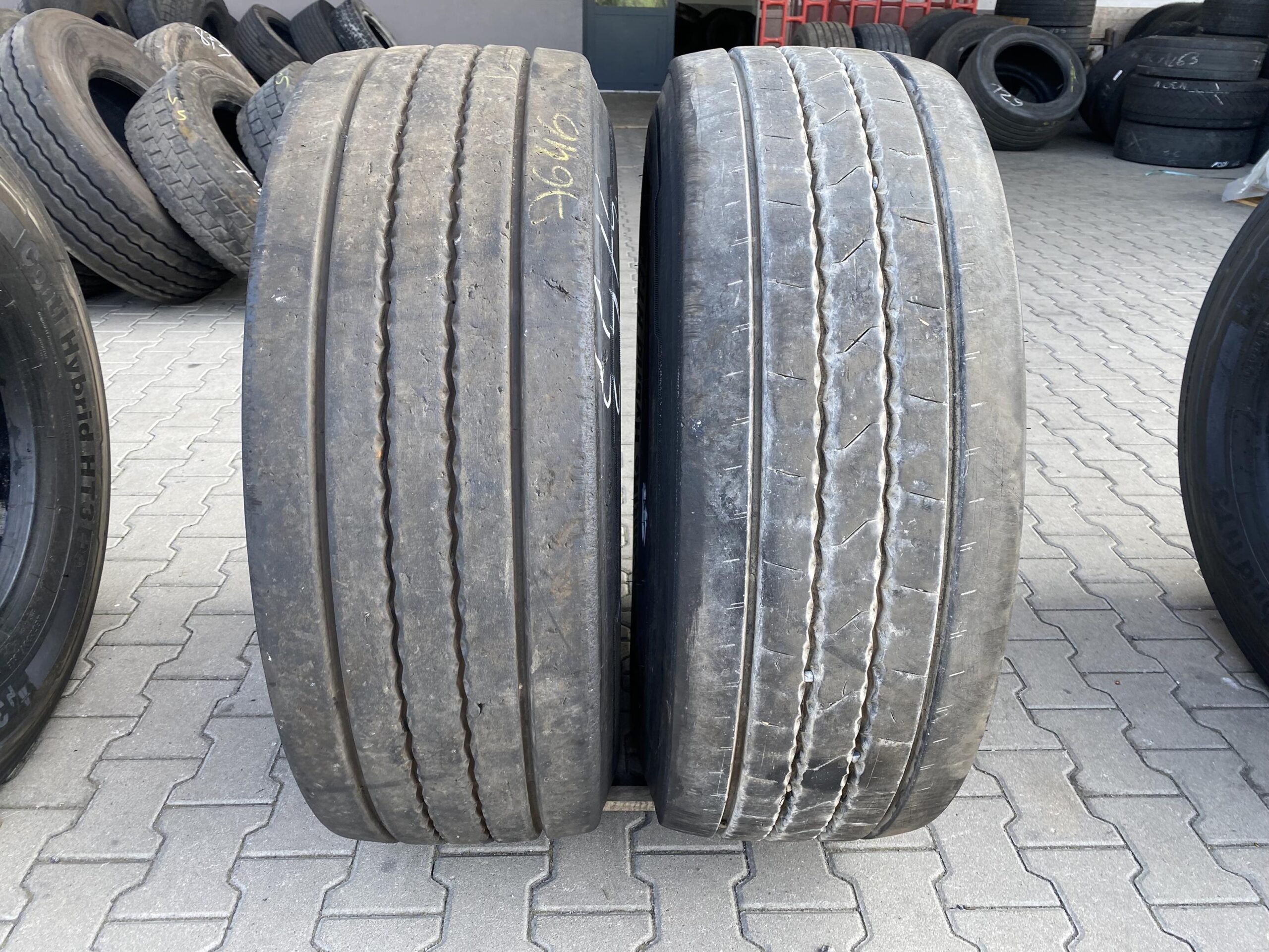 Stan bieżnika wynosi 12 mm, co świadczy o jego dobrym stanie i możliwościach eksploatacyjnych. Opony te są dostępne w ilości 2 sztuk. Dzięki zastosowaniu nowoczesnych technologii, model ten oferuje zrównoważoną wydajność paliwową oraz długotrwałą trwałość, co jest istotne w kontekście ekonomiki transportu. Produkt ten spełnia wysokie standardy jakości, co czyni go odpowiednim wyborem dla profesjonalnych przewoźników.