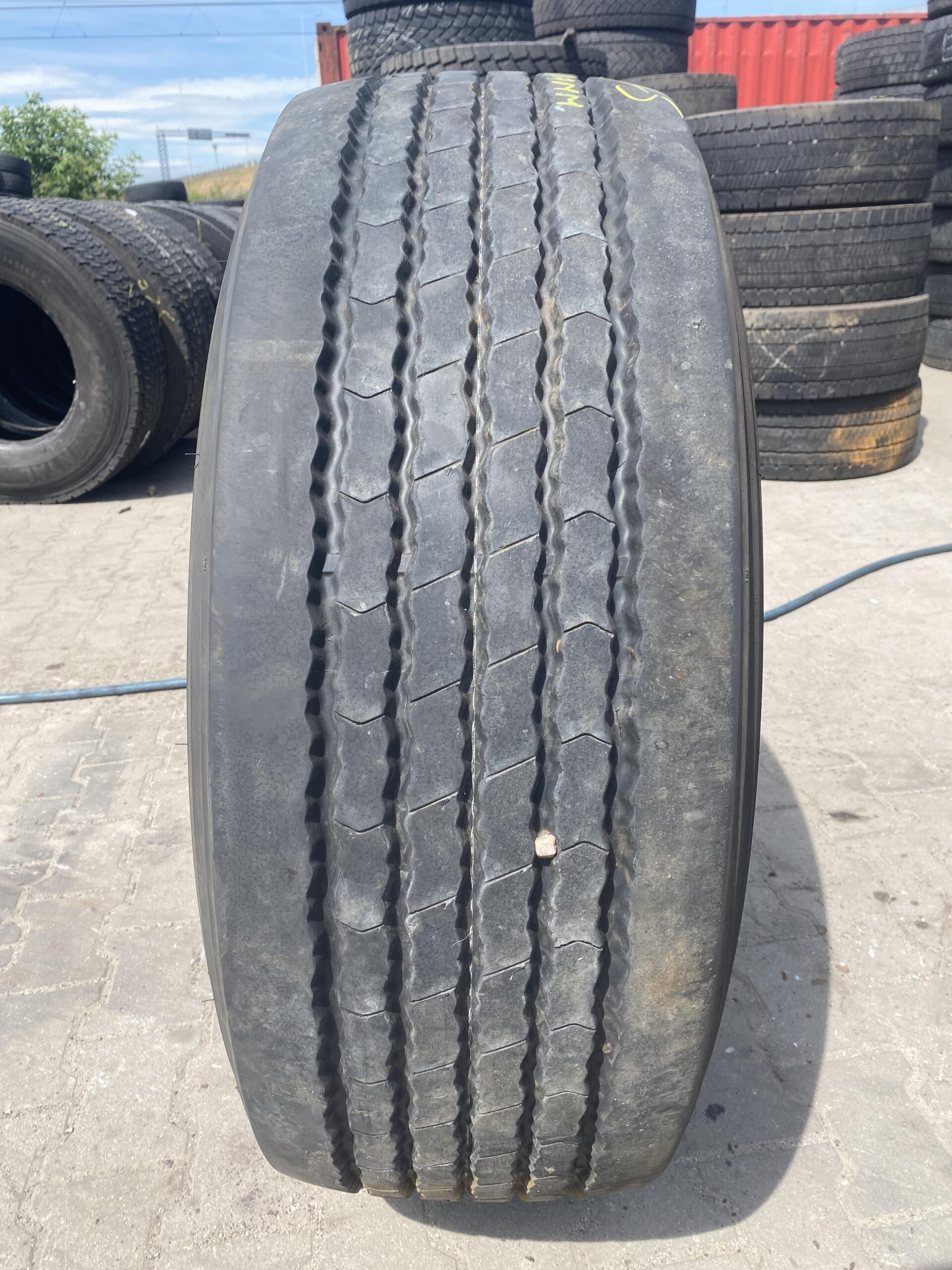 Stan bieżnika wynosi 11 mm, co wskazuje na jego dobrą kondycję oraz możliwość dalszego użytkowania. Opona ta jest dostępna w ilości 1 sztuki. Producent, firma DAYTON, jest znana z wysokiej jakości swoich produktów, co czyni tę oponę odpowiednim wyborem dla profesjonalnych przewoźników oraz firm transportowych. Opony tego typu są istotnym elementem floty pojazdów ciężarowych, wpływając na bezpieczeństwo oraz efektywność transportu.