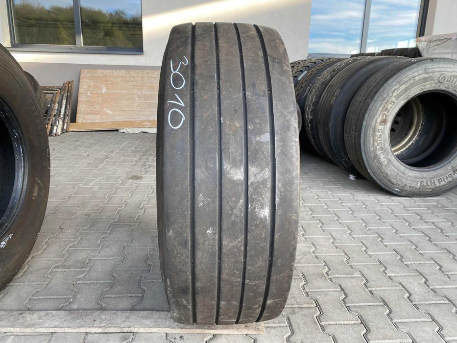 Opony ciężarowe GOODYEAR KMAX T w rozmiarze 385/65R22.5 to produkt przeznaczony do zastosowania na osi naczepowej. Oferują one wysoką wydajność oraz trwałość, co jest istotne w kontekście transportu drogowego. Bieżnik modelu KMAX T charakteryzuje się optymalnym układem rowków, co zapewnia dobrą przyczepność oraz stabilność podczas jazdy, a także efektywne odprowadzanie wody, co wpływa na bezpieczeństwo w trudnych warunkach atmosferycznych. Opony te mają stan bieżnika wynoszący 7-8 mm, co wskazuje na ich dobrą kondycję i potencjalną długowieczność. Produkt dostępny jest w ilości 1 sztuki. Opony GOODYEAR są znane z wysokiej jakości wykonania oraz innowacyjnych rozwiązań technologicznych, co czyni je odpowiednim wyborem dla profesjonalnych przewoźników. Specyfikacja: