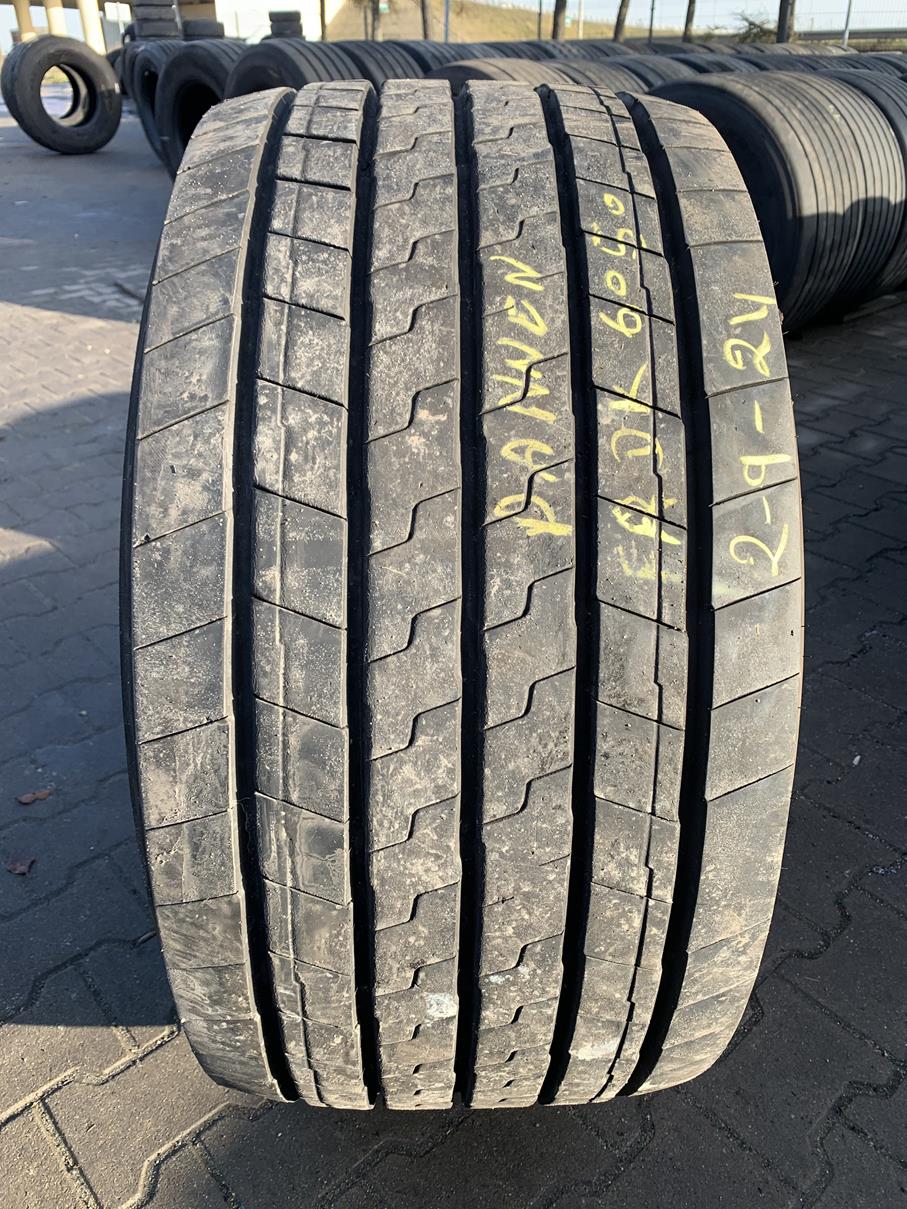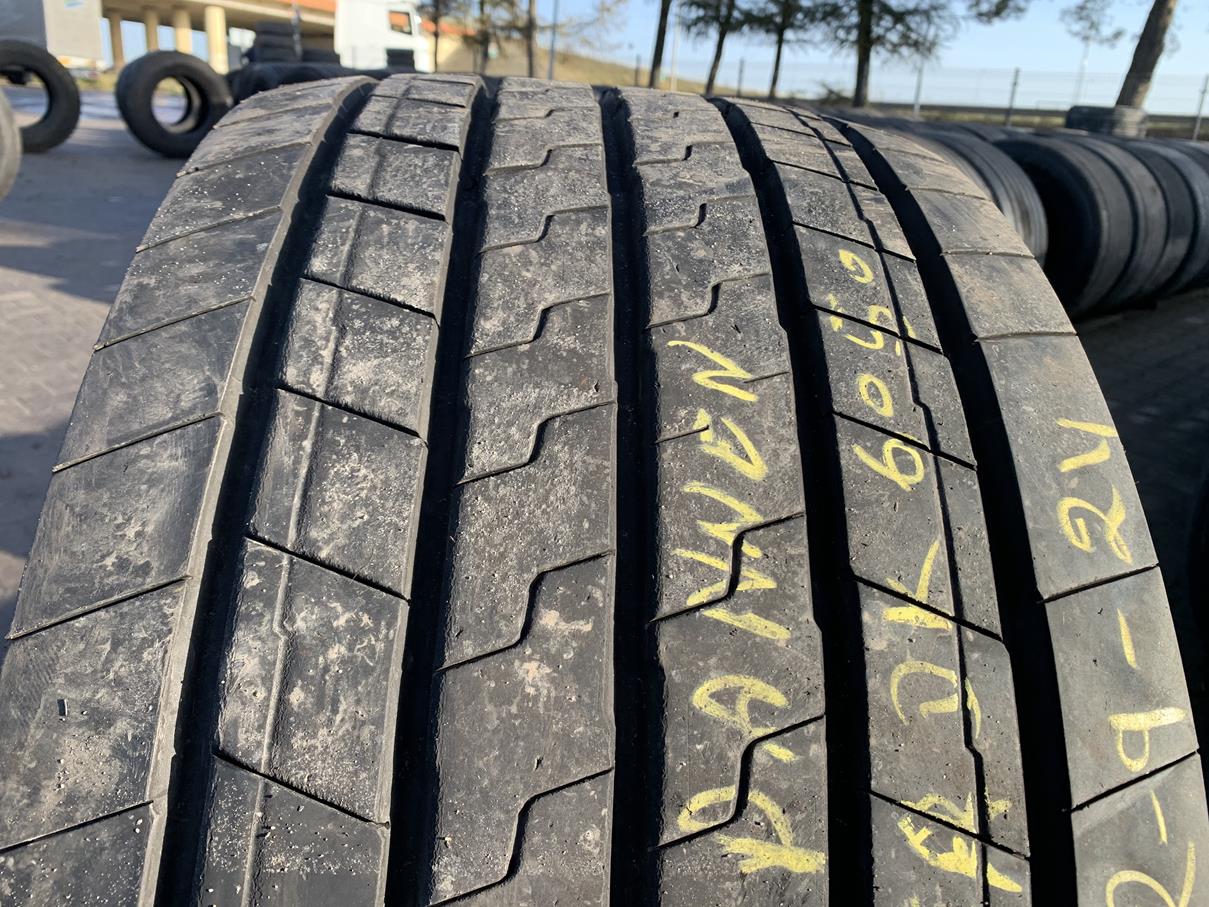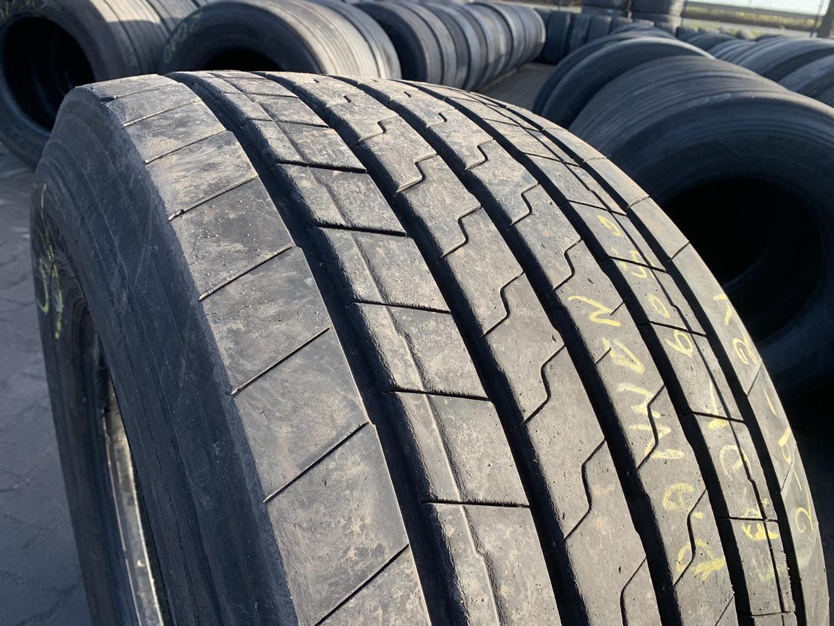 Opony ciężarowe 435/50R19.5 GOODYEAR KMAX T GEN-2 to produkt renomowanego producenta, przeznaczony do zastosowania na osi naczepowej. Opona charakteryzuje się rozmiarem 435/50R19.5 oraz bieżnikiem modelu KMAX T GEN-2, który został zaprojektowany z myślą o zwiększonej trwałości i wydajności. Stan bieżnika wynosi od 11 do 12 mm, co świadczy o jego dobrym stanie technicznym i gotowości do użytkowania. Opona ta jest dostępna w ilości 1 sztuki. Model KMAX T GEN-2 wyróżnia się optymalnym połączeniem przyczepności oraz efektywności paliwowej, co czyni go odpowiednim wyborem dla profesjonalnych przewoźników. Produkt ten spełnia wysokie standardy jakości, co jest typowe dla marki GOODYEAR, znanej z innowacyjnych rozwiązań w dziedzinie opon.