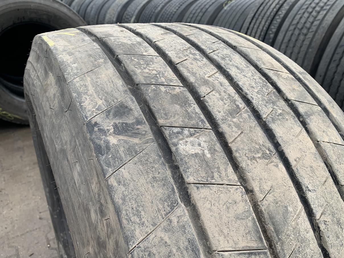 Opony ciężarowe 435/50R19.5 GOODYEAR KMAX T GEN-2 to produkt renomowanego producenta, przeznaczony do użytku na osi naczepowej. Opona charakteryzuje się rozmiarem 435/50R19.5, co zapewnia odpowiednią nośność oraz stabilność podczas transportu. Model KMAX T GEN-2 wyróżnia się nowoczesnym wzorem bieżnika, który został zaprojektowany z myślą o optymalizacji osiągów na różnych nawierzchniach. Stan bieżnika wynosi 7-8 mm, co wskazuje na jego dobrą kondycję i zdolność do efektywnego odprowadzania wody, co przekłada się na bezpieczeństwo jazdy. Produkt dostępny jest w ilości 1 sztuki. Opony GOODYEAR są znane z wysokiej jakości wykonania oraz trwałości, co czyni je odpowiednim wyborem dla profesjonalnych przewoźników oraz firm transportowych.