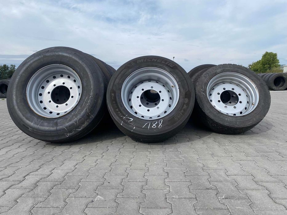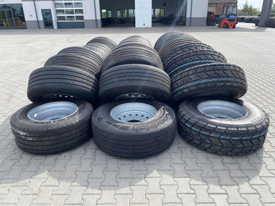 Kompletne koła do przyczepy rolniczej Brandys HL składają się z nowej felgi oraz używanej opony pogłębionej. Felga ma wymiary 11,7-22.5, wyposażona jest w osiem otworów montażowych oraz ma wartość ET równą 0. Otwór na piastę ma średnicę 22 cm, co zapewnia odpowiednie dopasowanie do pojazdów wymagających takich parametrów. Opony dostępne są w różnych rozmiarach, w tym: 385/65R22.5 (wysokość 103 cm), 385/55R22.5 (wysokość 97 cm), 355/50R22.5, 315/70R22.5, 315/60R22.5 oraz 295/60R22.5. Wybór odpowiednich rozmiarów oraz typów felg i opon jest kluczowy dla optymalizacji osiągów pojazdu. Kompletne koła stanowią istotny element wyposażenia, zapewniając stabilność oraz bezpieczeństwo podczas eksploatacji. Właściwości jezdne oraz trwałość opon mogą być różne w zależności od ich stanu oraz zastosowania.Kompletne koła składające się z felgi oraz opony, dostępne w różnych rozmiarach, w tym: 385/65R22.5 (wysokość 103 cm), 385/55R22.5 (wysokość 97 cm), 355/50R22.5, 315/70R22.5, 315/60R22.5 oraz 295/60R22.5. Felga jest nowa, o wymiarach 11,7-22.5, z ośmioma otworami montażowymi oraz wartością ET wynoszącą 0. Otwór na piastę ma średnicę 22 cm, co zapewnia odpowiednie dopasowanie do pojazdów wymagających takich parametrów. Opona jest używana, pogłębiana, co może wpływać na jej właściwości jezdne oraz trwałość. Kompletne koła stanowią istotny element wyposażenia pojazdów, zapewniając stabilność oraz bezpieczeństwo podczas eksploatacji. Wybór odpowiednich rozmiarów oraz typów felg i opon jest kluczowy dla optymalizacji osiągów pojazdu.