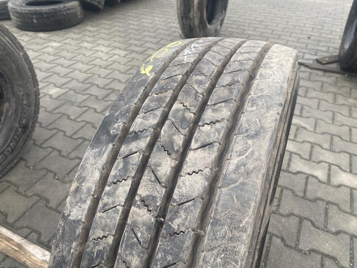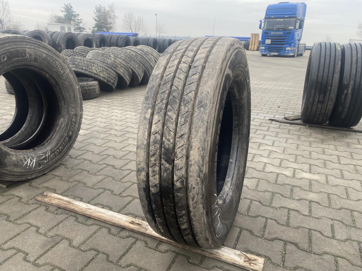 Model TH50 od Uniroyal, cenionego producenta w branży oponiarskiej, wyróżnia się konstrukcją przystosowaną do wymagań osi naczepowej. Opona charakteryzuje się bieżnikiem o głębokości 11-12 mm, co świadczy o jej dobrym stanie i pozwala na długotrwałe użytkowanie. Taka głębokość bieżnika ma znaczenie dla przyczepności i bezpieczeństwa, zwłaszcza w zmiennych warunkach drogowych, a także wpływa na ekonomikę eksploatacji, oferując optymalne opory toczenia.