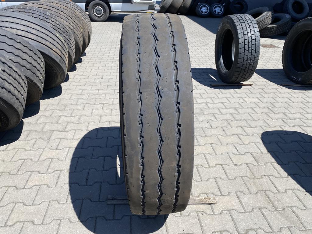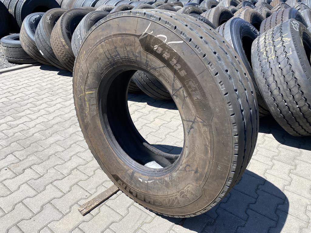 Dostępna jest jedna opona Michelin X WORKS Z w rozmiarze 13R22.5, przeznaczona do montażu na osi prowadzącej. Głębokość bieżnika, w zakresie 7-8 mm, wskazuje na zużycie, ale opona nadal powinna zapewniać wystarczającą przyczepność. Model X WORKS Z firmy Michelin charakteryzuje się konstrukcją zapewniającą dużą wytrzymałość i odporność na uszkodzenia w trudnych warunkach eksploatacyjnych. Opona ta może być odpowiednia do użytku w pojazdach pracujących w budownictwie lub transporcie regionalnym.