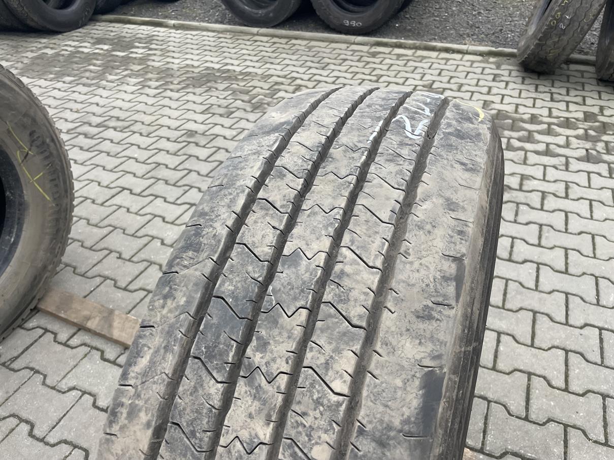 Prezentowana opona posiada bieżnik o głębokości 11-12 mm, co wskazuje na jej bardzo dobry stan techniczny i pozwala na dalszą eksploatację. Dostępność jednej sztuki jest praktycznym rozwiązaniem dla tych, którzy potrzebują wymienić pojedynczy element na osi prowadzącej, bez konieczności kupowania kompletu opon. Opona ta, ze względu na swoje parametry, może być dobrym wyborem dla operatorów flot, poszukujących niezawodności.