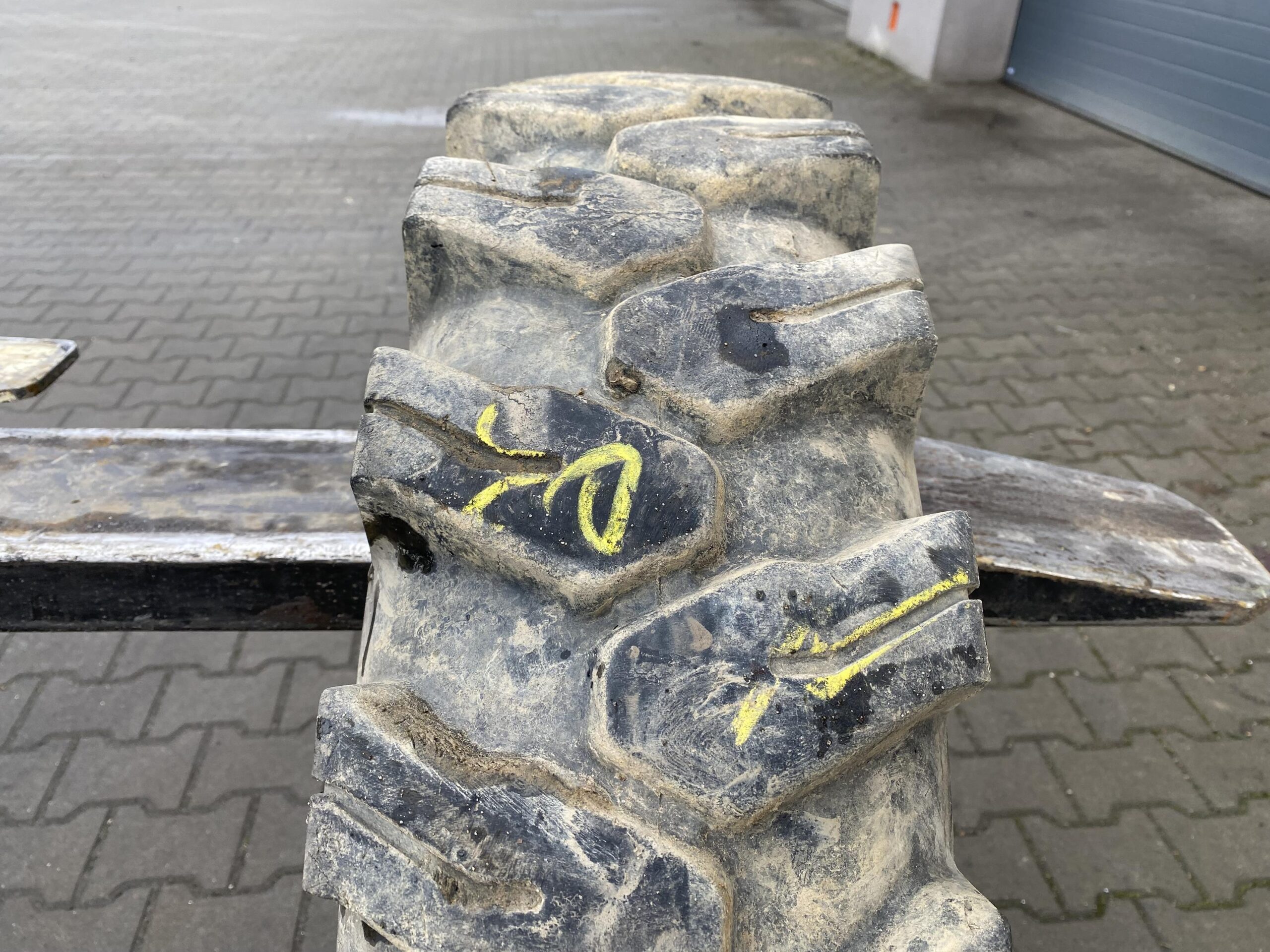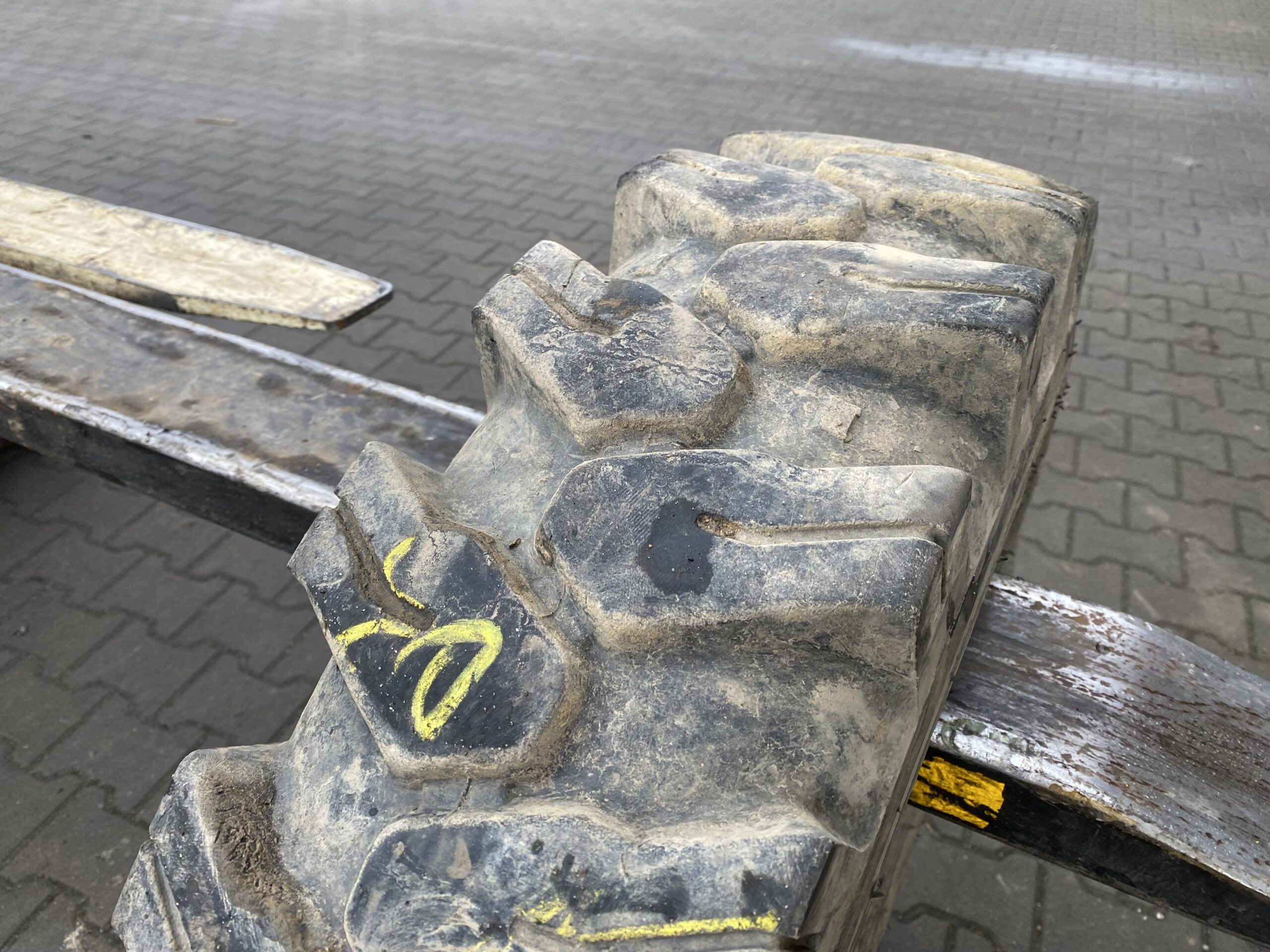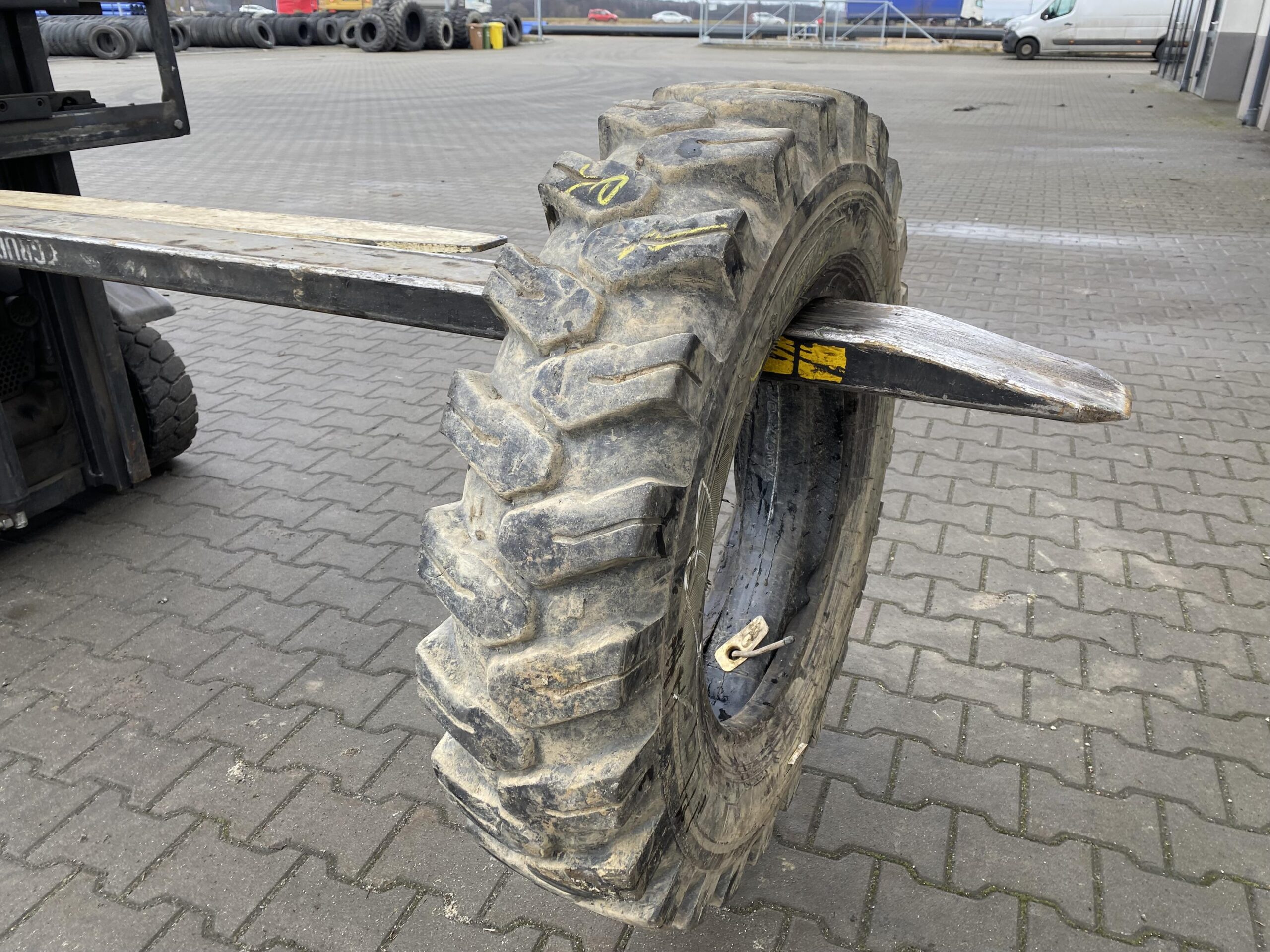 Opona WESTLAKE EL08 w rozmiarze 8.25-20, przeznaczona do ładowarek kołowych. Stan bieżnika określony na 90% wskazuje na jej niewielkie zużycie. Dostępna w pojedynczej sztuce, co może być odpowiednie dla osób poszukujących konkretnego modelu do wymiany lub uzupełnienia w parku maszynowym.