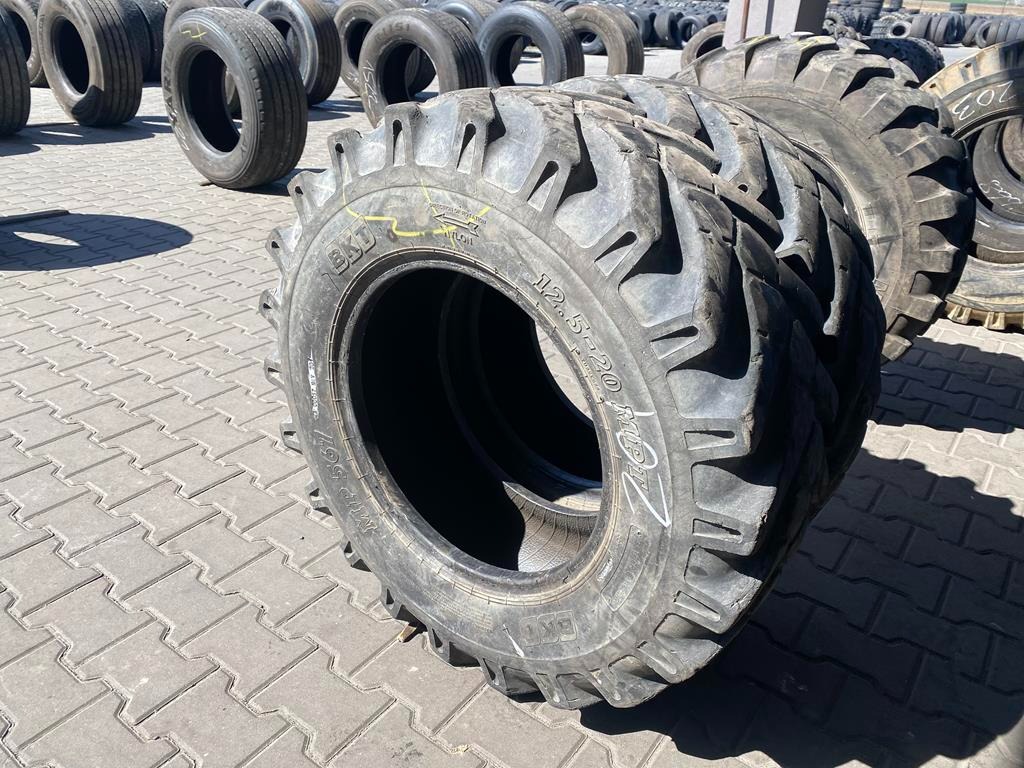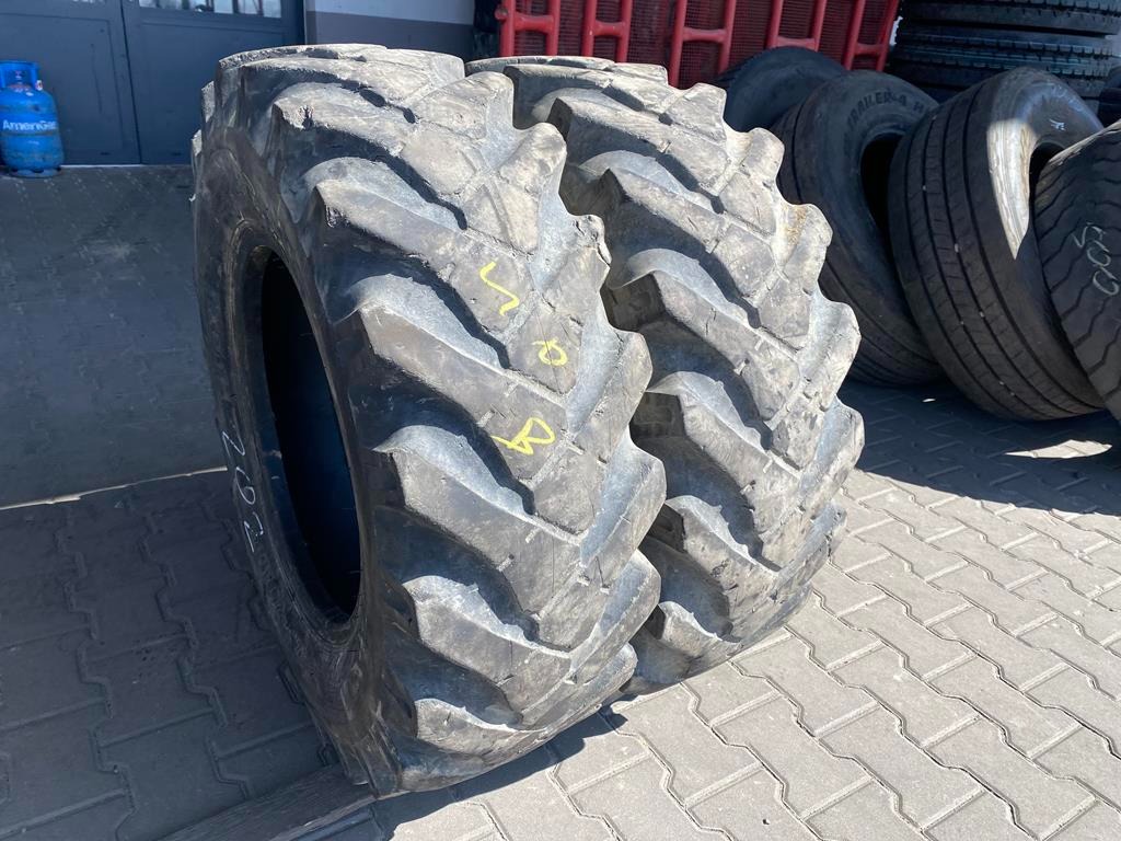 Oferujemy parę (2 sztuki) używanych opon marki BKT, model MP567, w rozmiarze 12.5-20 MPT. Są to produkty przeznaczone do zastosowań w sektorze budowlanym, często spotykane na maszynach typu koparko-ładowarka.