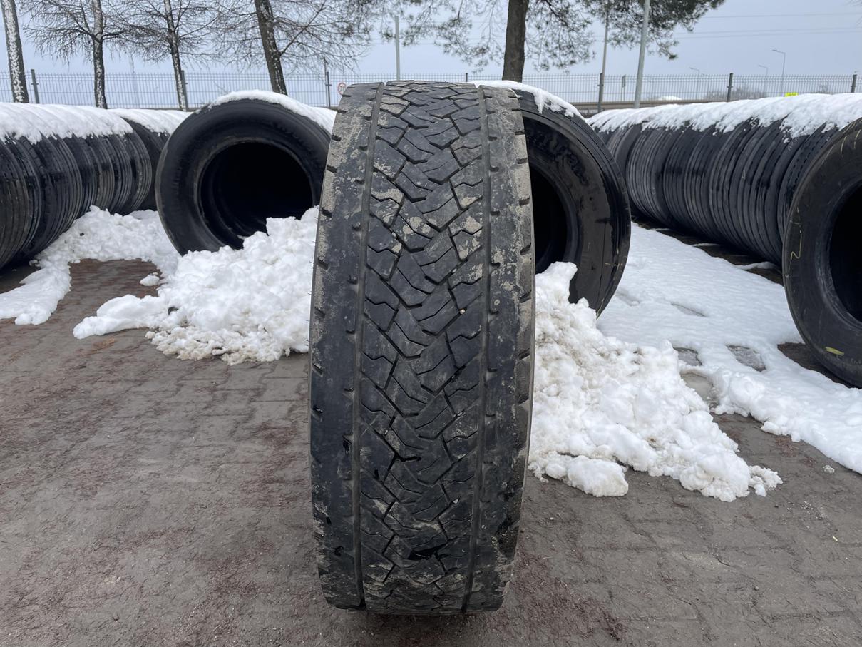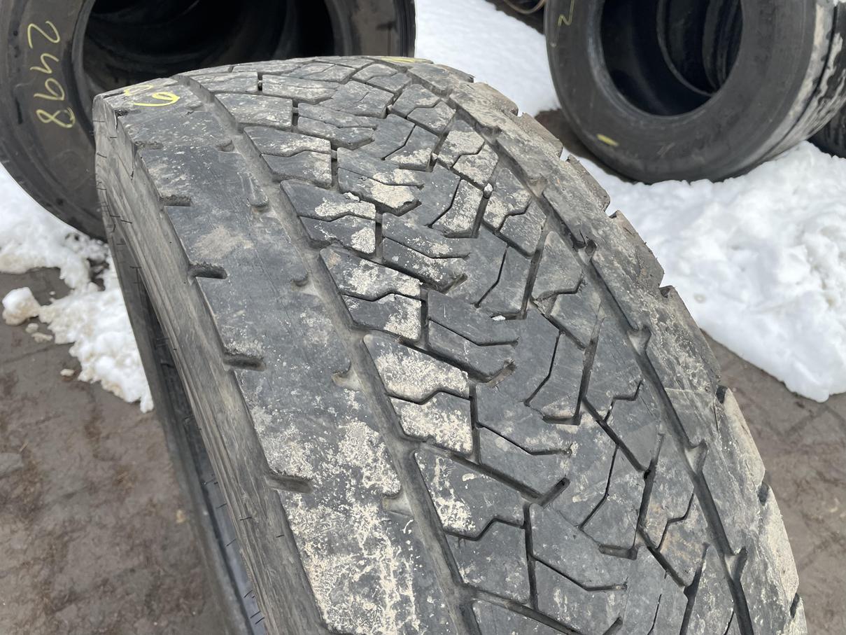 Opona ciężarowa Goodyear KMAX D A w rozmiarze 295/60R22.5 przeznaczona jest do montażu na osi napędowej. Bieżnik KMAX D A charakteryzuje się konstrukcją zapewniającą trakcję i stabilność w różnych warunkach drogowych. Prezentowana opona charakteryzuje się stanem bieżnika na poziomie 7-8 mm, co wskazuje na jej zużycie i pozostały okres eksploatacji. Dostępna jest jedna sztuka. Rozmiar 295/60R22.5 jest powszechnie stosowany w pojazdach ciężarowych i autobusach.