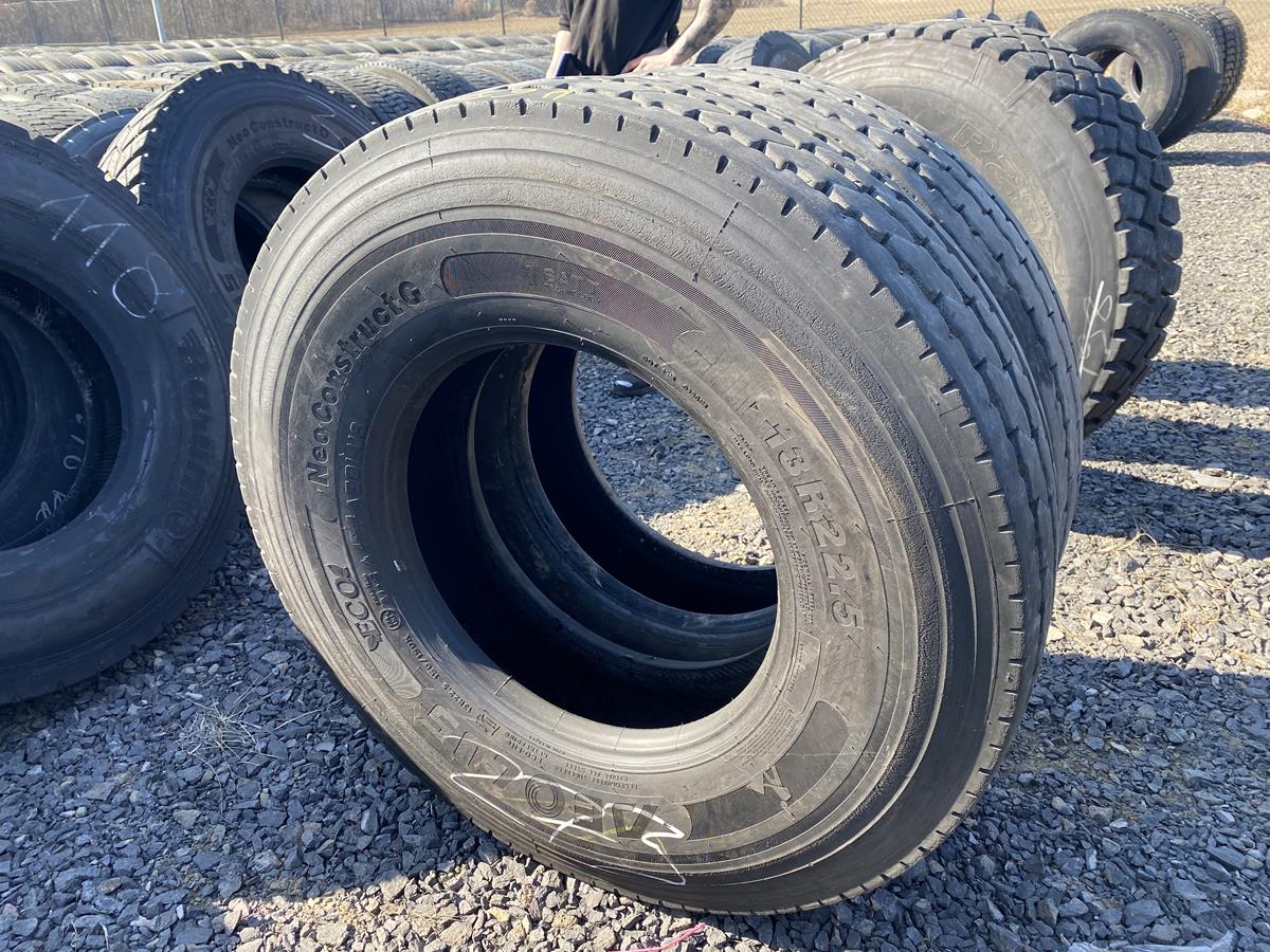 Dwie używane opony ciężarowe Aeolus NEO CONSTRUCT G w rozmiarze 13R22.5. Dedykowane do montażu na osi prowadzącej, szczególnie polecane do zastosowań budowlanych. Stan bieżnika: 11 mm. Model NEO CONSTRUCT G charakteryzuje się wzmocnioną konstrukcją i odpornością na uszkodzenia, typową dla opon budowlanych.