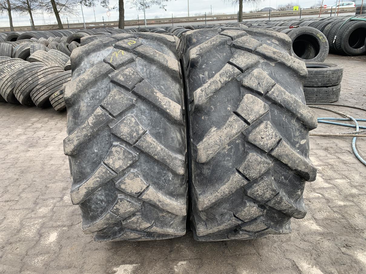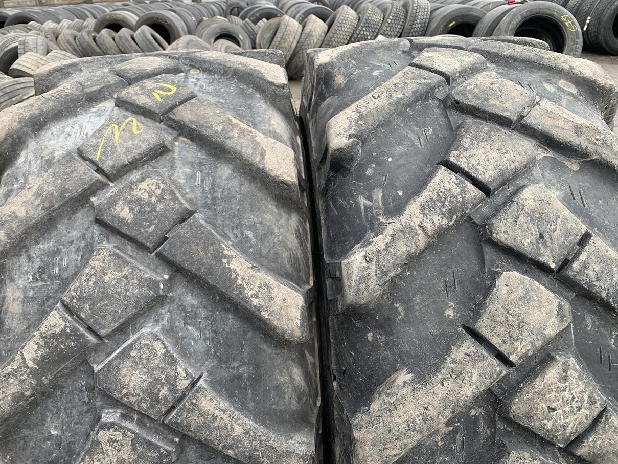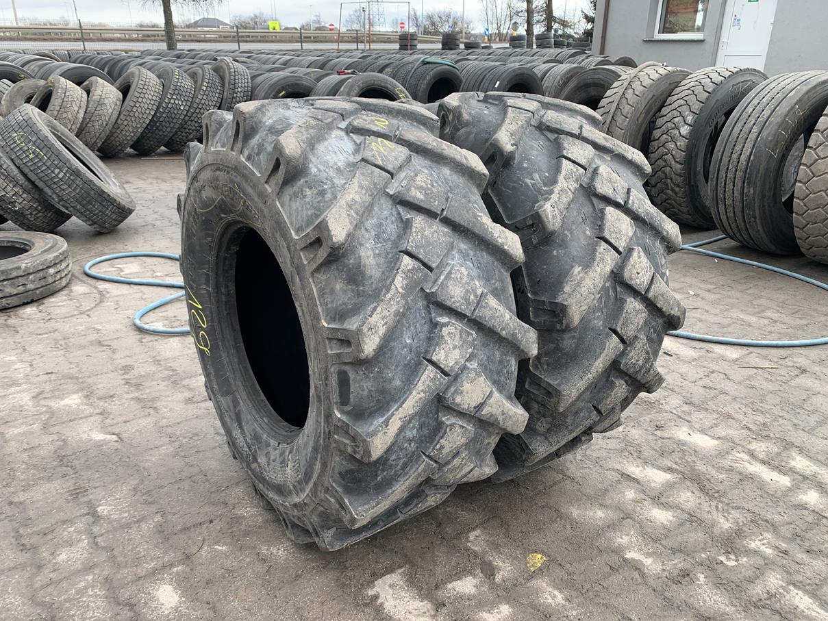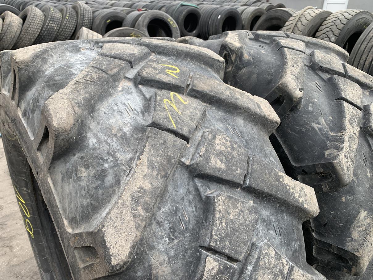 Opony przemysłowe używane, rozmiar 18-19.5 / 445/65R19.5. Oferowane opony pochodzą od producenta TVS EUROGRIP, model MT63. Stan opon jest widoczny na załączonych zdjęciach. Dostępne są dwie sztuki. Przeznaczone do zastosowań przemysłowych, w tym w maszynach typu MECALAC.