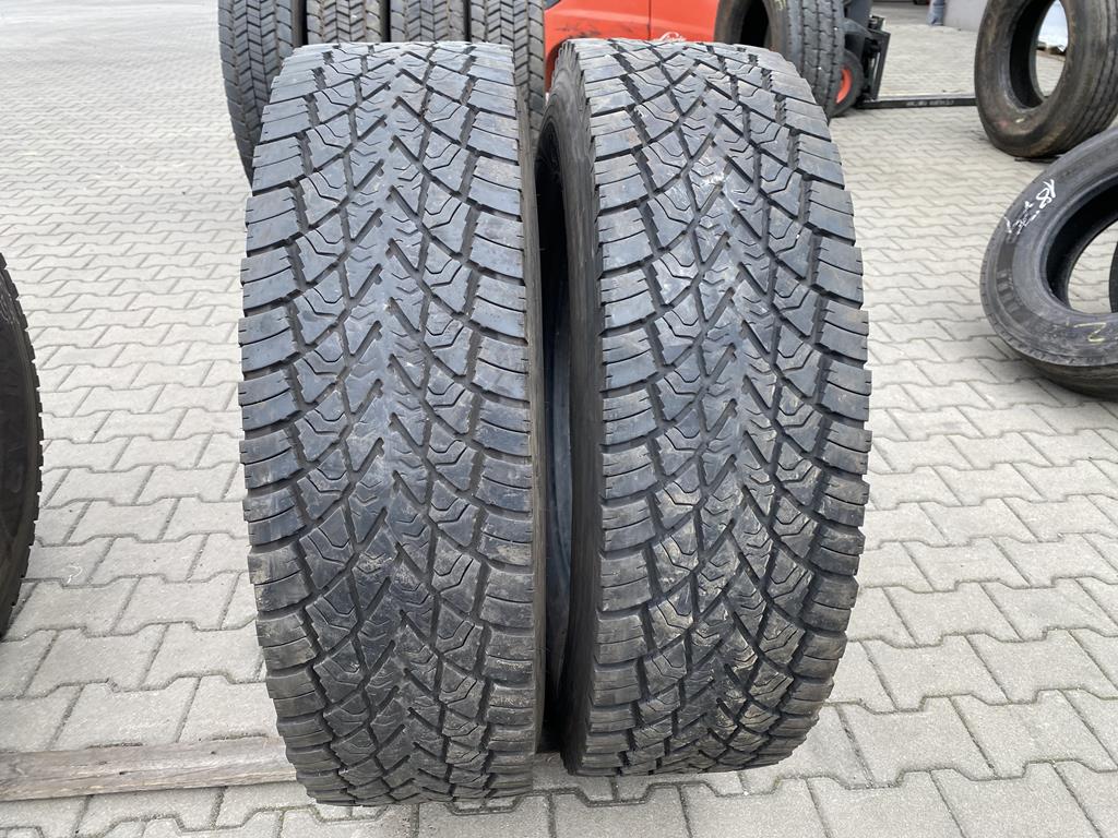 Dwie opony Goodyear Ultra Grip Max D w rozmiarze 295/80R22.5, przeznaczone do montażu na osi napędowej. Zakres głębokości bieżnika od 6 do 10 mm wskazuje, że opony są używane, z różnym stopniem zużycia. Model Ultra Grip Max D to opona zimowa, zaprojektowana z myślą o zapewnieniu maksymalnej przyczepności i bezpieczeństwa w trudnych warunkach pogodowych, takich jak śnieg i lód. Charakteryzuje się specjalnym wzorem bieżnika z dużą ilością lameli, które zapewniają doskonałą trakcję i skuteczne hamowanie. Opony te powinny dobrze sprawdzać się w transporcie regionalnym i dalekobieżnym w okresie zimowym. Zestaw dwóch sztuk pozwala na wyposażenie osi napędowej. Goodyear Ultra Grip Max D to opony zapewniające dobrą trakcję i bezpieczeństwo w warunkach zimowych.