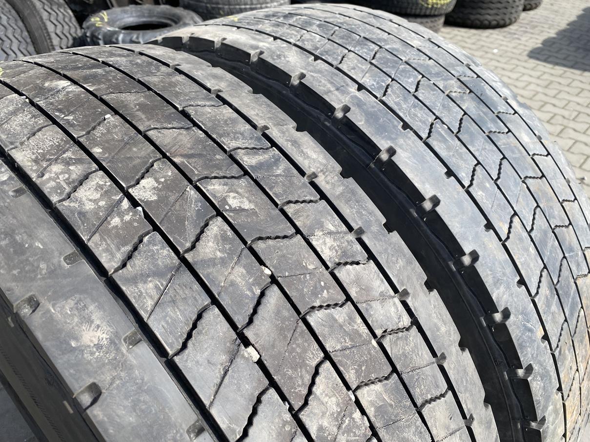 Opona CONTINENTAL CONTI ECOREGIONAL HD3+, o rozmiarze 315/70R22.5, jest przeznaczona do montażu na osi napędowej pojazdu. Jej bieżnik charakteryzuje się głębokością w zakresie od 8 do 9 mm, co świadczy o umiarkowanym zużyciu i nadal dobrym stanie eksploatacyjnym. Dostępne są dwie sztuki tego produktu.