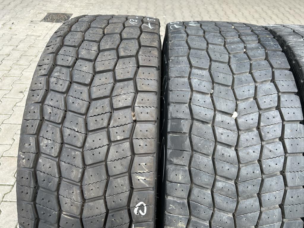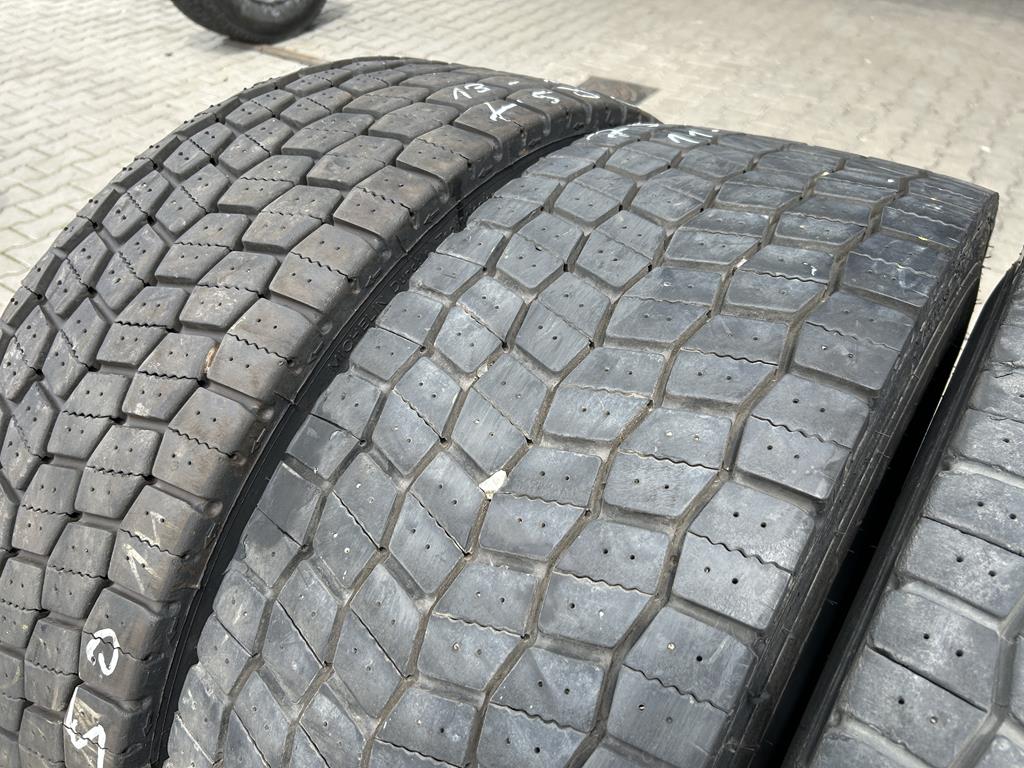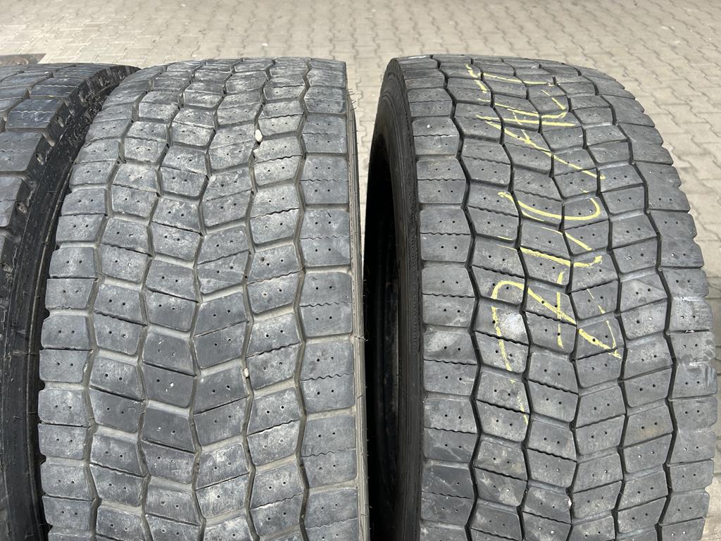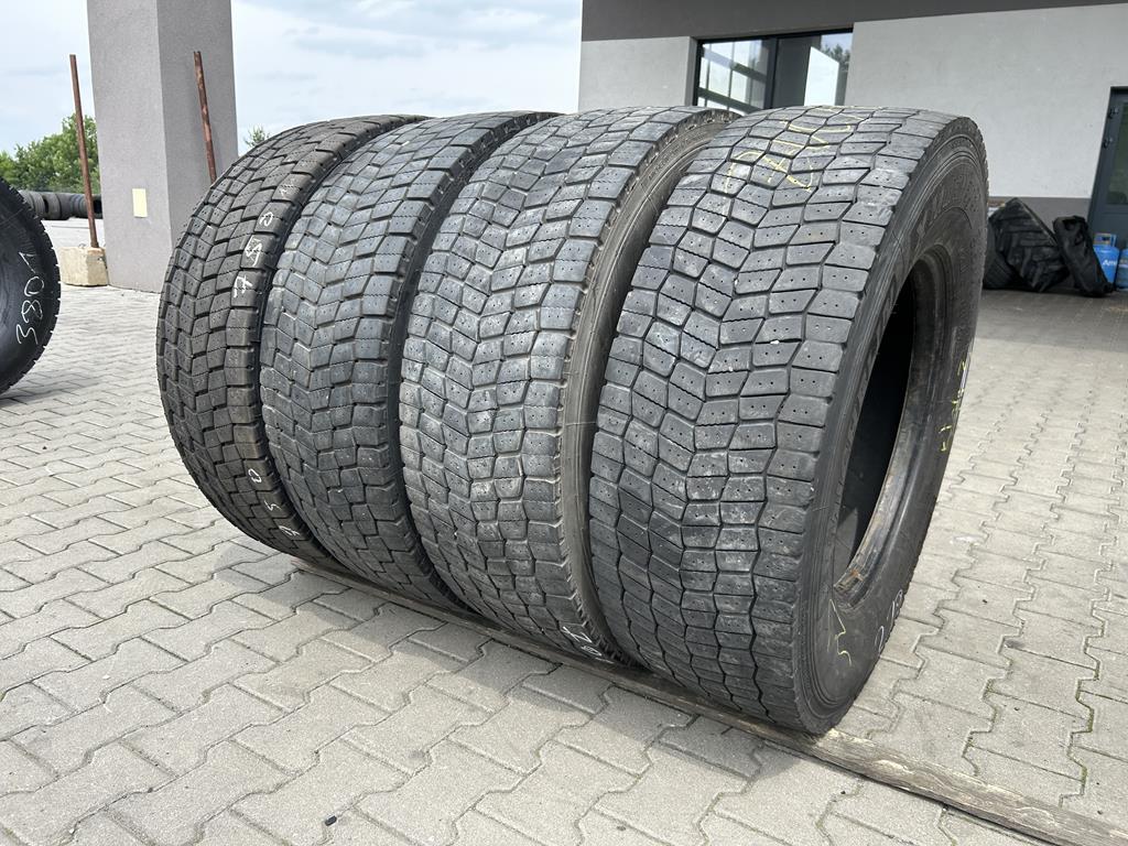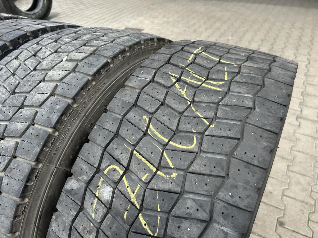 Oferujemy zestaw czterech używanych opon ciężarowych Michelin X MULTIWAY 3D XDE w rozmiarze 315/70R22.5, dedykowanych do montażu na oś napędową. Głębokość bieżnika każdej z opon waha się w przedziale od 8 do 11 mm, co świadczy o ich dobrym stanie i możliwości dalszej, efektywnej eksploatacji.