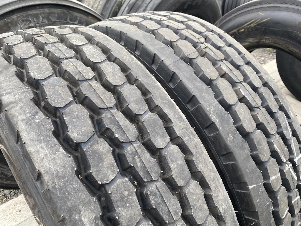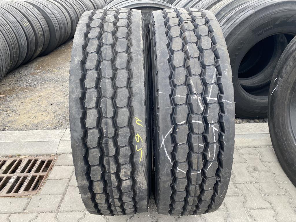 Oferta obejmuje komplet dwóch opon ciężarowych w rozmiarze 315/80R22.5, które przeszły proces bieżnikowania. Opony te są przeznaczone do montażu na osi podwieszanej (wleczonej) pojazdów ciężarowych.