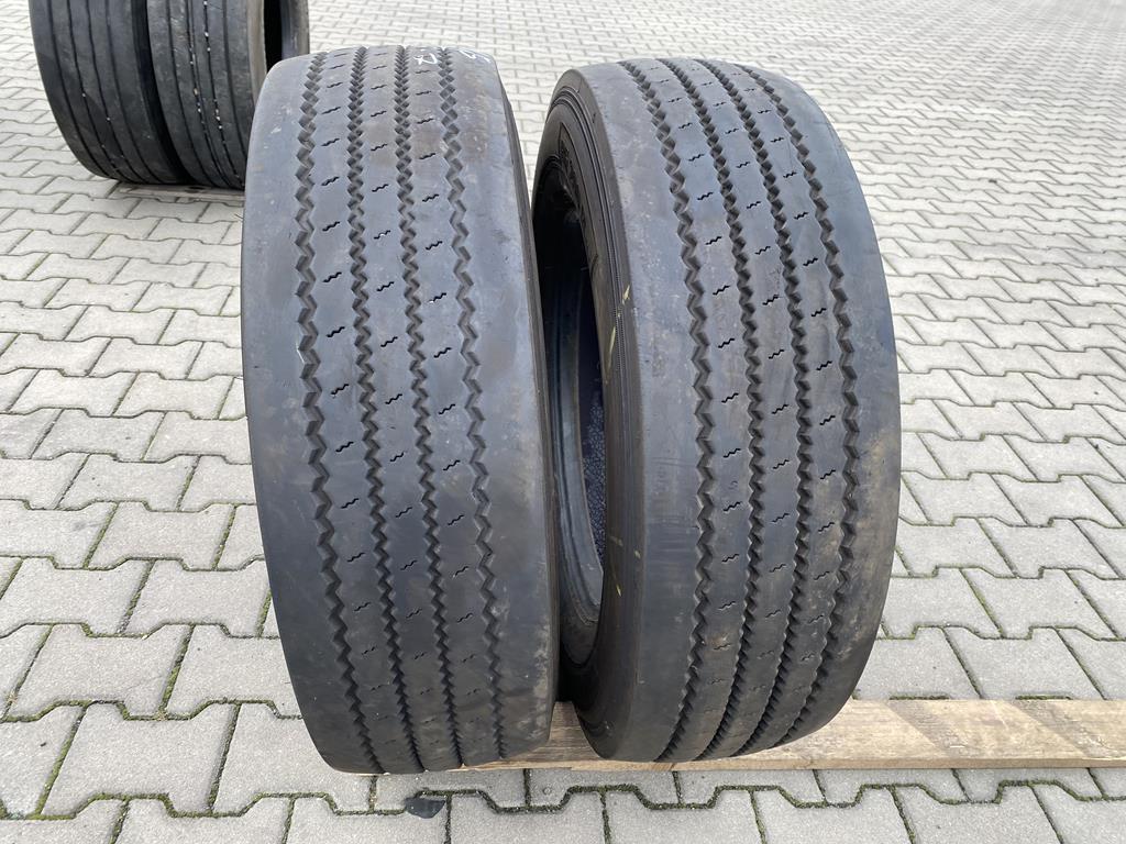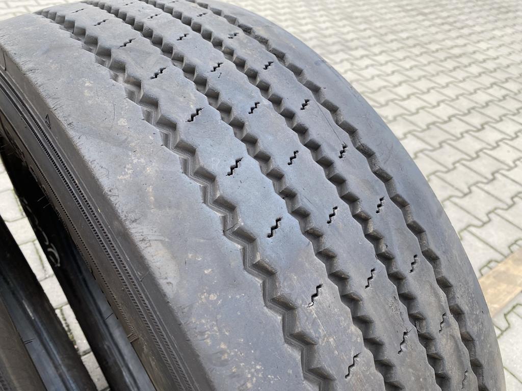 Dwie opony Barum BF200 Road w rozmiarze 265/70R19.5 przeznaczone do montażu na osi prowadzącej. Prezentowane modele charakteryzują się bieżnikiem o głębokości w zakresie od 6 do 7 mm. Opony Barum BF200 Road są projektowane z myślą o transporcie regionalnym i dystrybucji, oferując połączenie trwałości i ekonomicznej eksploatacji. Oś prowadząca, na której montowane są te opony, odgrywa kluczową rolę w precyzji kierowania i stabilności pojazdu, a odpowiedni bieżnik zapewnia przyczepność i kontrolę podczas jazdy.