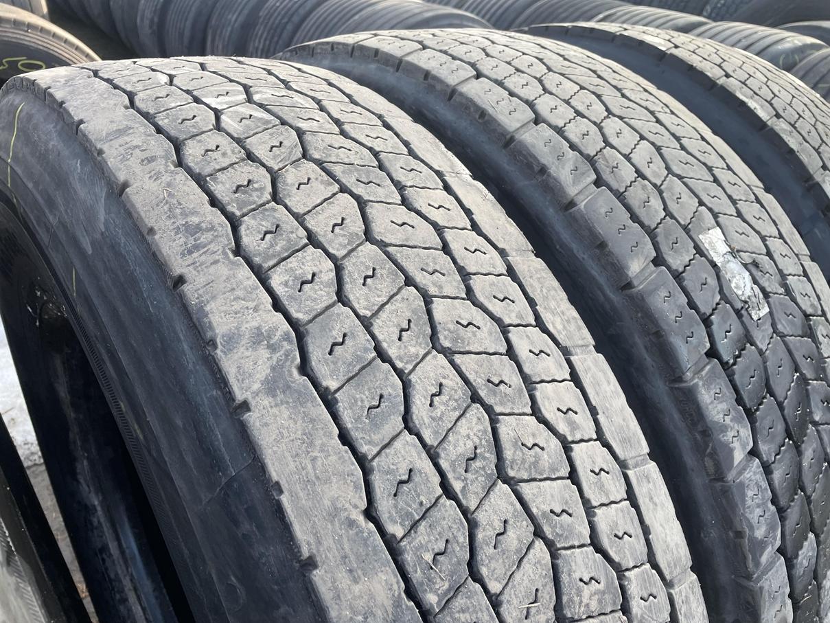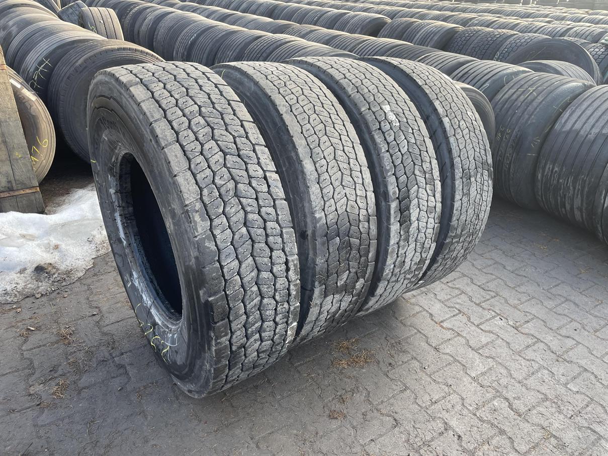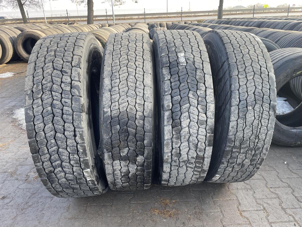 Aktualny stan ogumienia wskazuje na głębokość bieżnika rzędu 10–13 mm, co pozwala na dalszą, regularną eksploatację w ruchu ciężarowym. Proces regeneracji został przeprowadzony na solidnych karkasach, co gwarantuje odpowiednią sztywność konstrukcji pod dużym obciążeniem. Oferta obejmuje komplet czterech identycznych sztuk, co umożliwia jednorodne doposażenie osi napędowej pojazdu, zapewniając równomierny rozkład sił i stabilną pracę całego układu jezdnego.