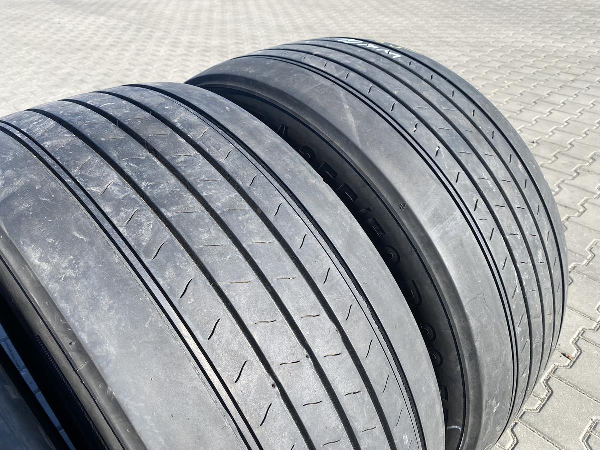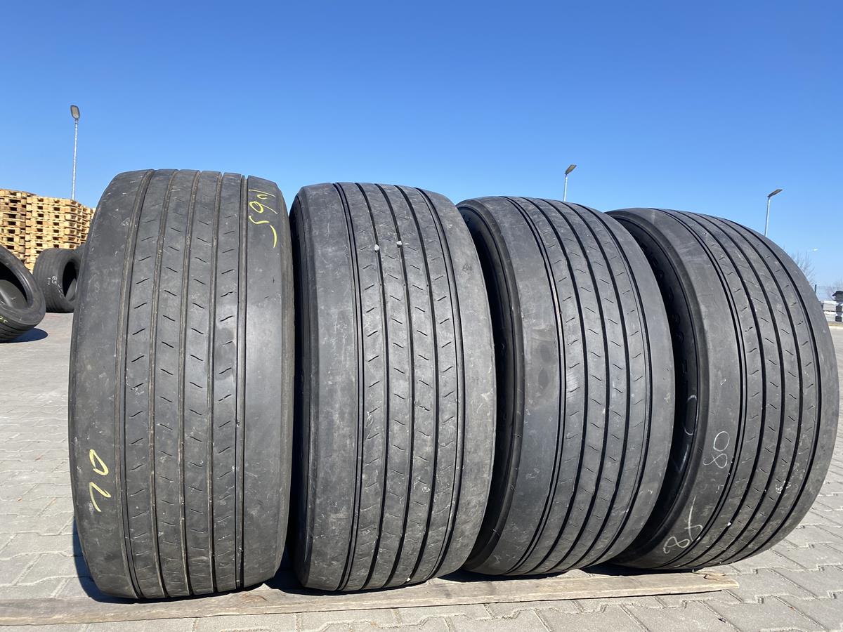 Oferujemy używane opony ciężarowe marki CONTINENTAL, model CONTI ECOPLUS HS3, w rozmiarze 355/50R22.5. Dedykowane do montażu na osi prowadzącej. Opony posiadają bieżnik o głębokości 10 mm. Dostępnych jest cztery sztuk.