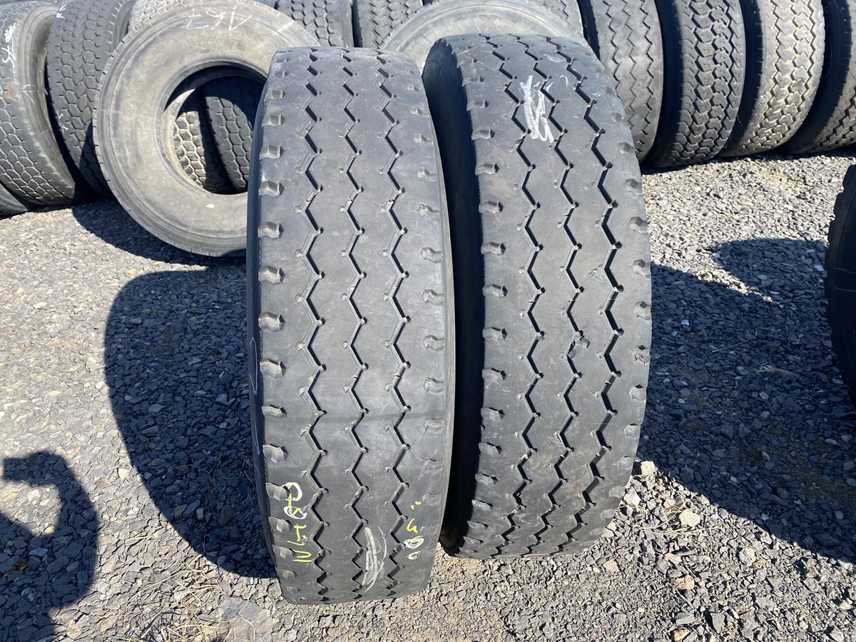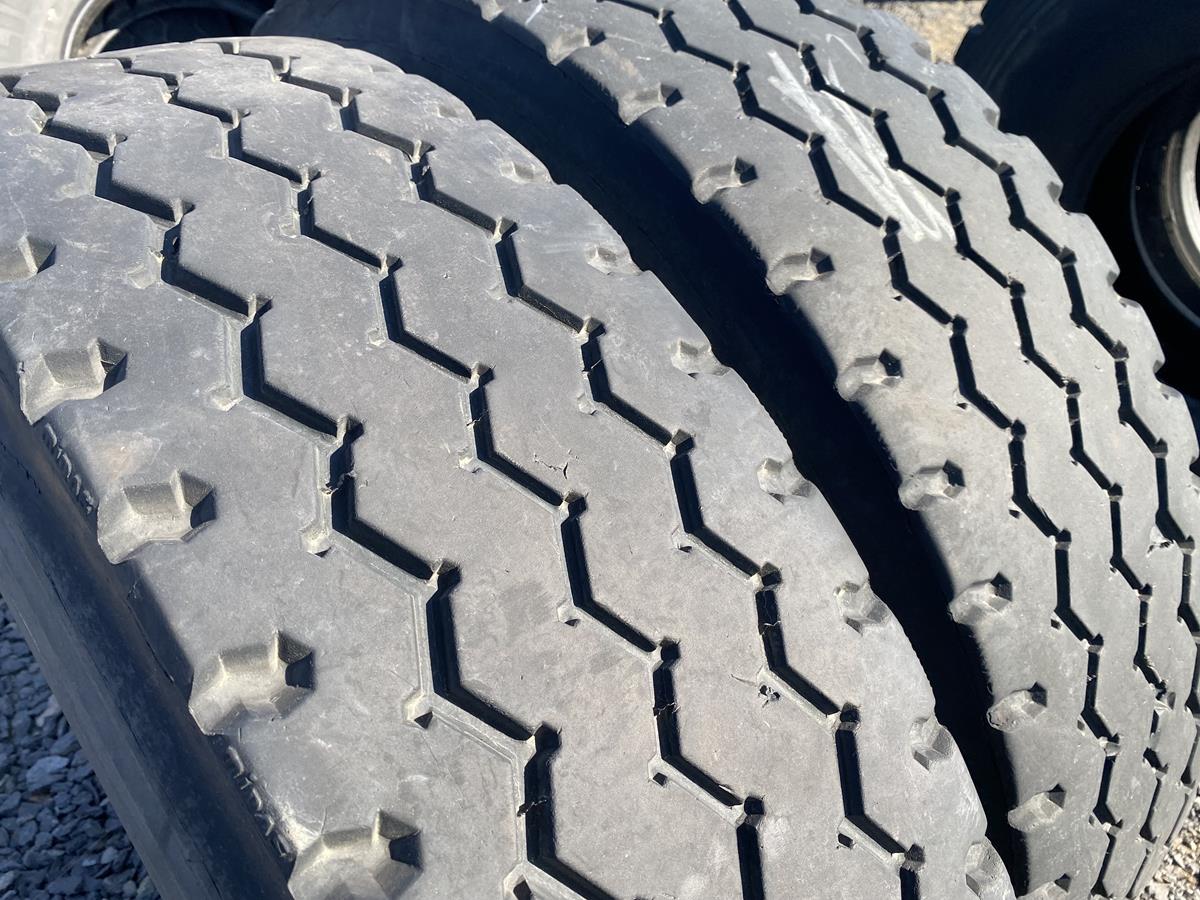 Dwie opony bieżnikowane marki Midas w rozmiarze 13R22.5, z bieżnikiem o wzorze Aeolus HN235. Przeznaczone do montażu na osi podwieszanej. Stan bieżnika dobry, o głębokości 8-11 mm. Bieżnik o wzorze Aeolus HN235 zapewnia odpowiednie parametry jezdne.